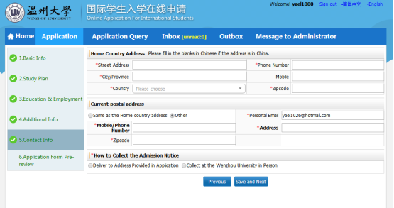 Please note:In “How to Collect the Admission Notice”, please choose “Deliver to Address Provided in Application” or “Collect at the Wenzhou University in Person”.