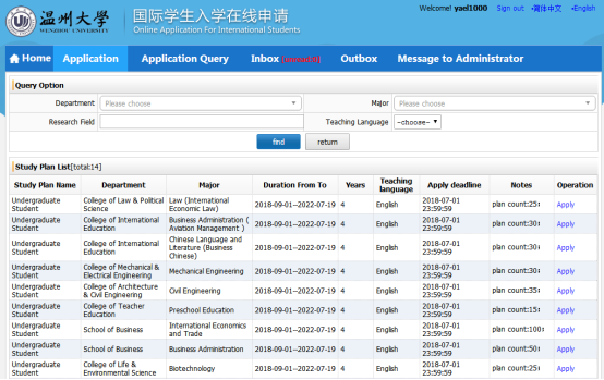 Choose the program you want to apply for, or search for it: fill in query option information (department, research field, major, teaching language) and click “Find”. There will be programs that meet the query information.