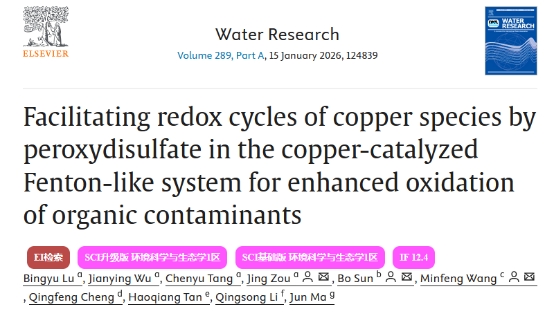 近日,8868体育_8868(中国)生命与环境科学学院赵敏教授课题组、哈尔滨工业大学马军院士团队和华侨大学邹景教授团队合作在国际著名期刊《Water research》上在线发表了一篇题为《Facilitating redox cycles of copper species by peroxydisulfate in the copper-catalyzed Fenton-like system for enhanced oxidation of organic contaminants》的研究论文。研究提出了一种利用氧化剂而不是还原剂和螯合剂来提高Cu(II)/H2O2过程氧化能力的新策略,为双氧化剂在金属价环中的协同作用提供了一个新的视角。