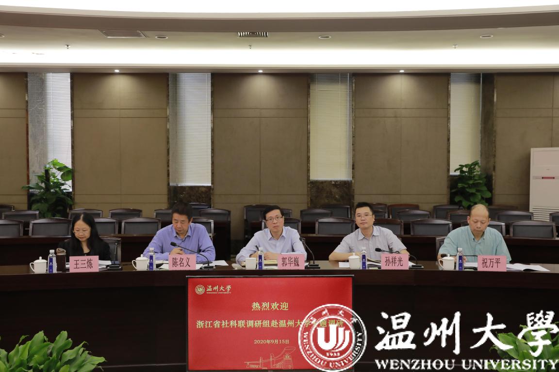 9月15日上午,浙江省社科联党组书记郭华巍一行来我校调研,市社科联党组书记、主席孙祥光等陪同调研。校领导、相关党政部门负责人、省部级社科基地负责人及人文社科处全体人员参加调研会。