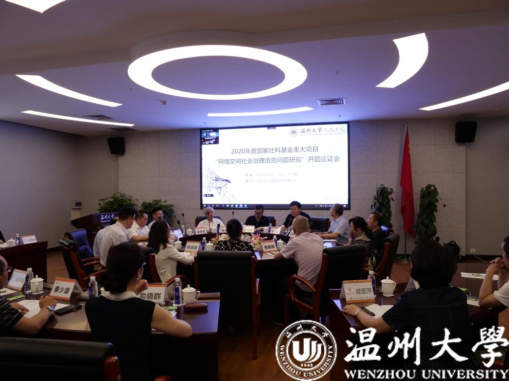 6月25日上午,国家社会科学基金重大项目“网络空间社会治理语言问题研究”开题论证会在我校岩松堂举行。浙江省社科联党组成员、副主席陈先春,我校徐和昆副校长出席会议并致辞。清华大学人文讲席教授、出土文献研究与保护中心主任黄德宽教授,中国社科院语言研究所所长,北京语言大学高精尖语言研究中心首席专家、中国辞书学会会长李宇明教授,湖南师范大学党委委员,副校长、国家“万人计划”哲学社会科学领军人才唐贤清教授,上海师范大学党委常委、上海市领军人才陈昌来教授,教育部“长江学者”特聘教授、江苏师范大学语言科学与艺术学院院长杨亦鸣教授,国家语委科研基地中国语情与社会发展研究中心主任、武汉大学赵世举教授,浙江科技学院副校长万健教授,各子课题负责人及部分课题组成员,学校相关职能部门负责人等出席会议。