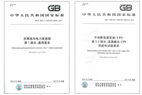 国家标准《不间断电源系统(UPS) 第5-3部分:直流输出UPS性能和试验要求》(GB/T 7260.503-2020)的起草单位为科华恒盛股份有限公司、广东志成冠军集团有限公司、西安电力电子技术研究所、施耐德电气信息技术(中国)有限公司、8868体育_8868(中国)、华为技术有限公司等22家行业知名企业和科研院校。