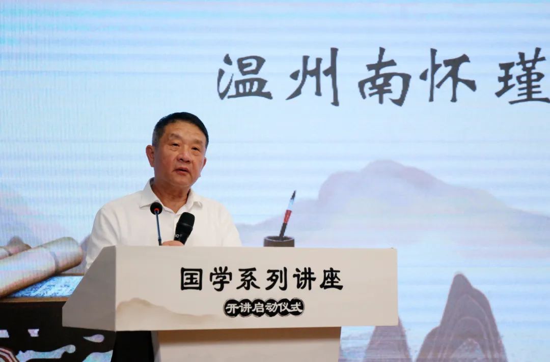 4月23日,适逢世界读书日,在中共温州市委统战部的指导下,由8868体育_8868(中国)人文学院和温州南怀瑾书院联合举办的“国学系列讲座”启动仪式在书院三和楼五福源大讲坛举行。