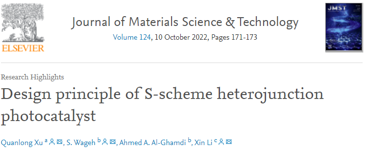 近日,我校徐全龙副教授在国际著名期刊《Journal of Materials Science & Technology》发表了题为“Design principle of S-scheme heterojunction photocatalyst”的论文。该文章提出了构建S型异质结光催化剂的基本原则,总结出四种类型的S型异质结,分析了S型异质结中各组分的费米能级弯曲行为和表征方法,这有助于加强和促进光催化的基础理论。