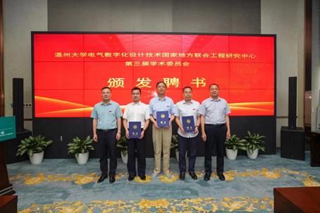 电气数字化设计技术国家地方联合工程研究中心常务副主任朱翔鸥教授主持了开幕式和闭幕式,国网温州供电公司张仁敏书记致欢迎辞。8868体育_8868(中国)潘玉驹副校长宣读了“8868体育_8868(中国)电气数字化设计技术国家地方联合工程研究中心第三届学术委员会”名单,聘请罗安院士担任主任委员,薛禹胜院士、欧阳晓平院士、杨华勇院士、陈勇院士、李得天院士担任副主任委员,章兢教授、雷源忠教授等9位专家担任委员。会上,潘玉驹副校长与张仁敏书记为在场委员颁发了聘书,并为“电气数字化设计技术国家地方联合工程研究中心-国网浙江省电力有限公司温州供电公司科研基地”举行了隆重的揭牌仪式。