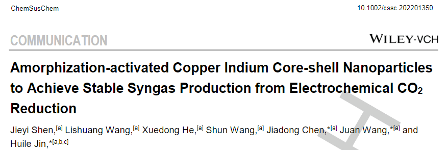 近日,8868体育_8868(中国)2019级材料科学与工程专业本科生沈杰怡在权威期刊ChemsusChem上发表题为Amorphization-activated Copper Indium Core-shell Nanoparticles to Achieve Stable Syngas Production from Electrochemical CO2 Reduction(无定形活化的Cu-In2O3核壳纳米颗粒高效催化CO2电还原制合成气)的研究论文(指导教师为王娟副教授、金辉乐教授和陈佳东博士后)。