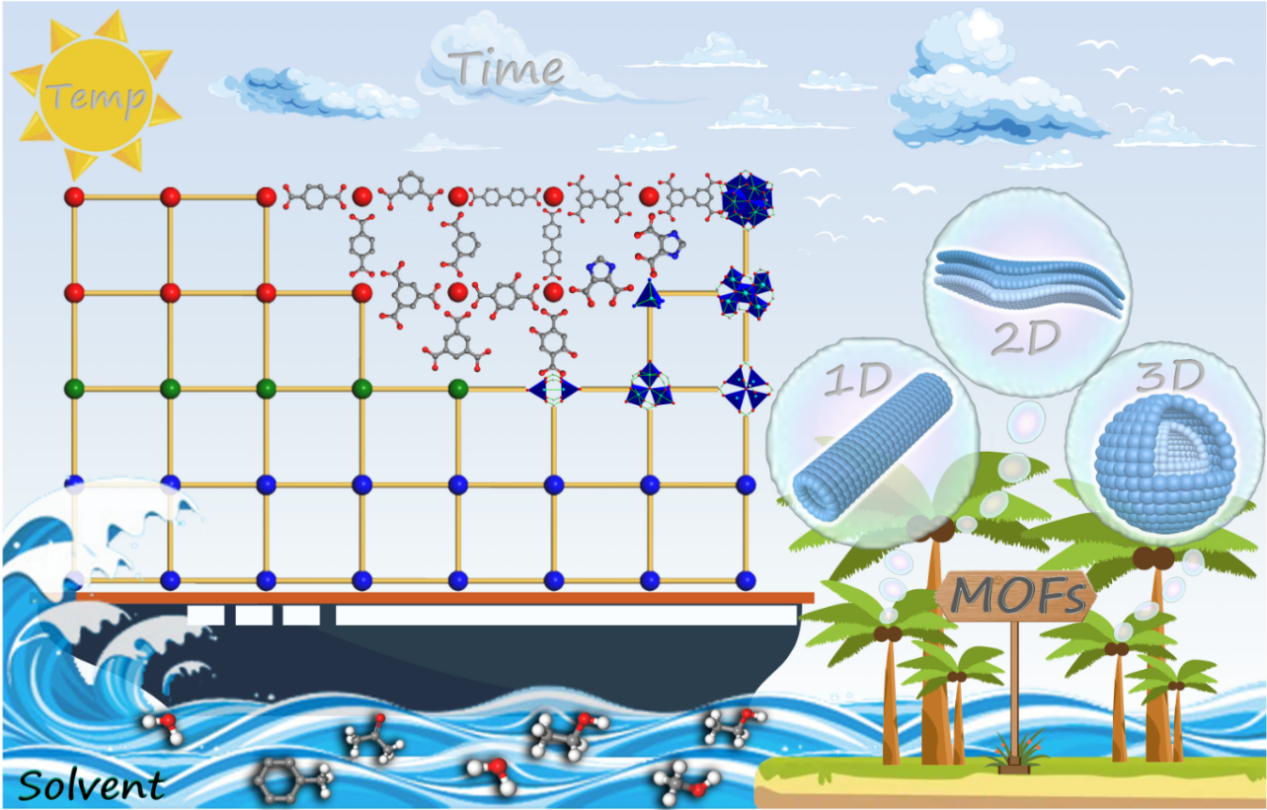 金属有机框架(metal-organic frameworks,MOFs)作为配位聚合物的一个新兴子类,由于其结构可调、具有精确的尺寸以及形态可控的特性,在整个材料科学领域中备受关注。近年来,诸多研究发现MOFs的形貌及功能受到结构的诱导而发生变化,可以形成特殊的形态、可控的纳米结构、超高的孔隙率和大的比表面积,并被广泛应用于环境和能源领域。鉴于此,为了更便捷、可控地合成理想的晶体材料,需深入研究影响MOFs功能和形貌的因素,进而实现MOFs材料在多尺度下的结构控制。
