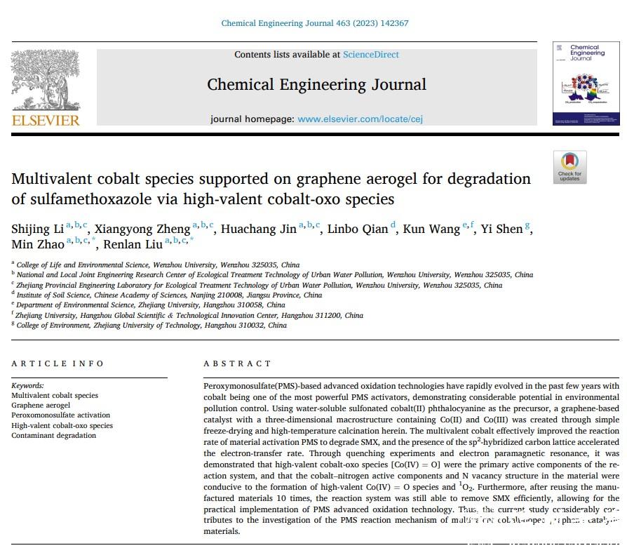 相关研究成果发表于《Chemical Engineering Journal》(SCI一区TOP期刊,IF = 16.7),8868体育_8868(中国)为第一通讯单位,生命与环境科学学院2020级硕士研究生李时菁为第一作者,赵敏教授和刘仁兰博士为共同通讯作者,相关工作由国家自然科学基金(22006117,61871293),浙江省自然科学基金(LQ20B070012,LQ20B070010),国家重点研发计划(2022YFA3702103)资助。