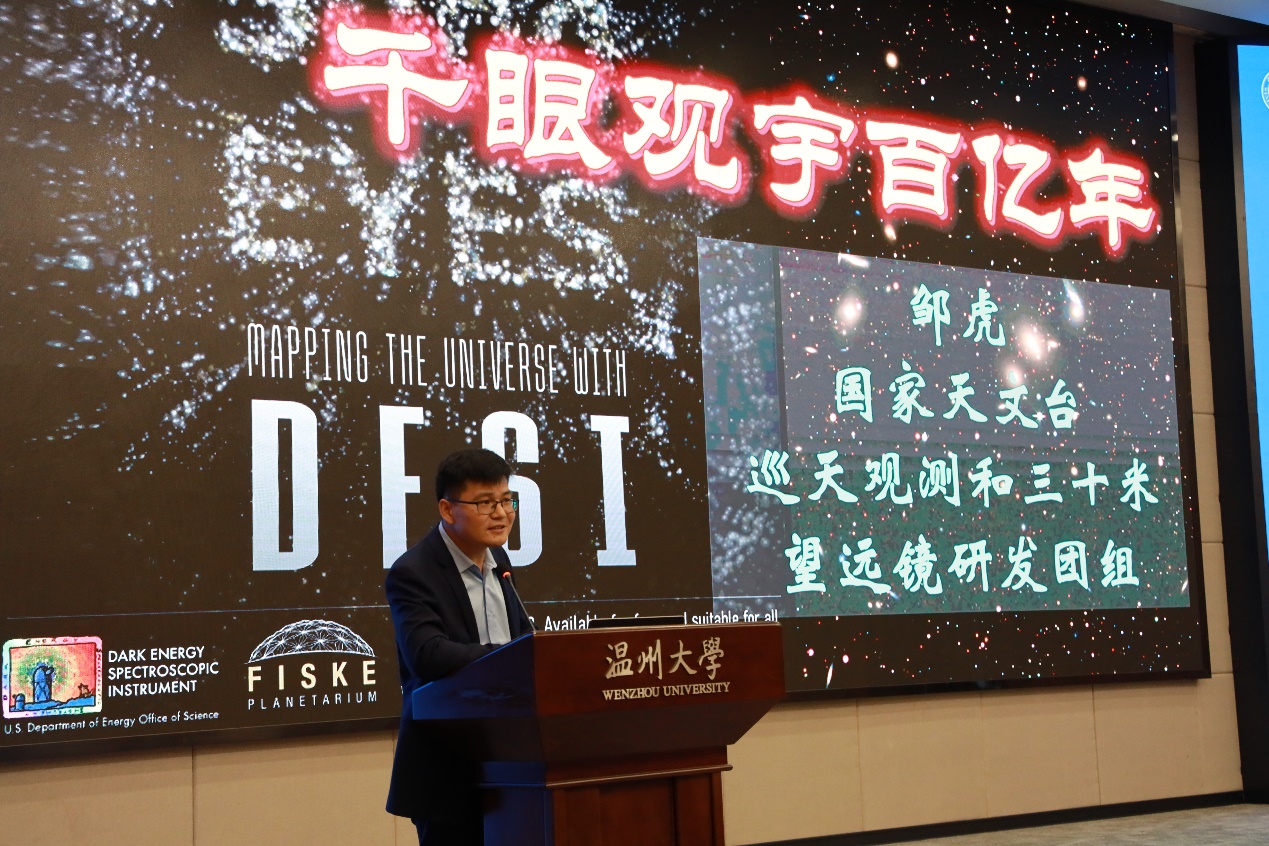 邹虎以深入浅出的方式介绍了国际暗能量巡天计划。他介绍了目前世界上最强大的观宇利器——暗能量探测仪DESI,它能探测到120亿年前宇宙早期的天体信号,构建出三维宇宙空间,从而揭开宇宙“暗能量”谜团。