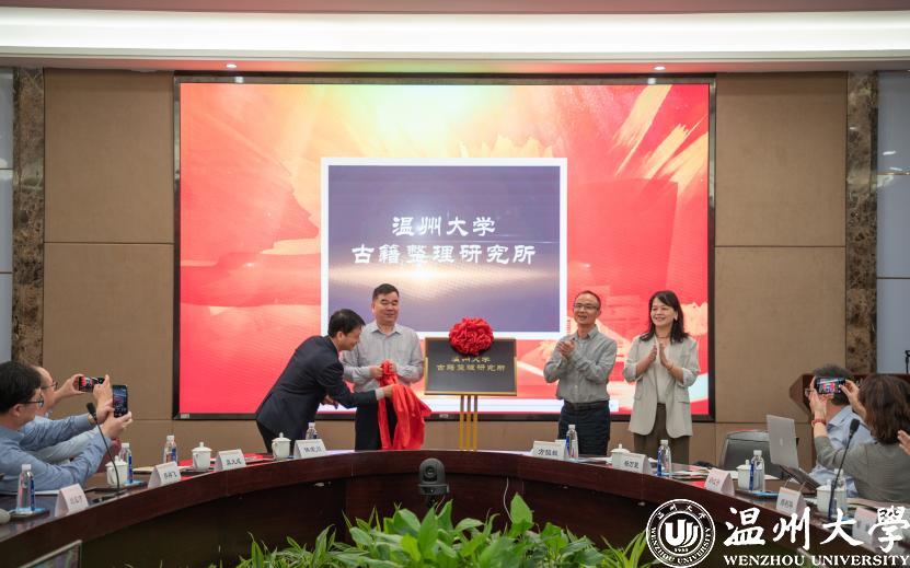 由全国高校古委会秘书处副秘书长、北京大学王周谊教授,8868体育_8868(中国)副校长徐和昆教授,温州市社科联副主席叶雪影女士与8868体育_8868(中国)古籍整理研究所所长侯荣川教授为8868体育_8868(中国)古籍整理研究所揭牌。