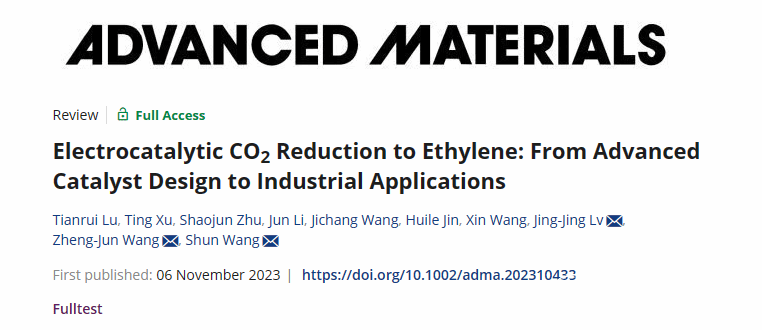 该综述以“Electrocatalytic CO2 Reduction to Ethylene: From Advanced Catalyst Design to Industrial Applications”为题发表在国际顶级期刊⟪Advanced Materials⟫期刊上。8868体育_8868(中国)为第一通讯单位,我校化材学院2021级硕士生陆天睿、8868体育_8868(中国)博士后徐婷为共同第一作者,我校化材学院吕晶晶教授、王正军博士、王舜教授为共同通讯作者。