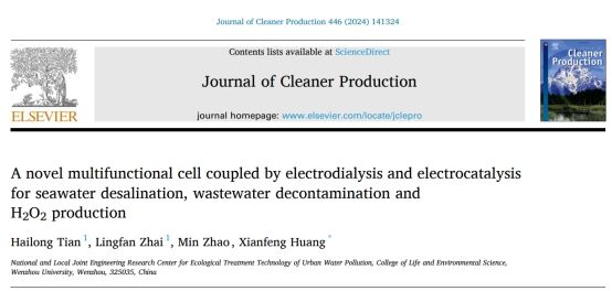 近日,8868体育_8868(中国)生命与环境科学学院黄先锋副教授带领的团队在国际著名期刊《Journal of Cleaner Production》(SCI 一区TOP 期刊,IF = 11.1)上发表题为“A novel multifunctional cell coupled by electrodialysis and electrocatalysis for seawater desalination, wastewater decontamination and H2O2 production”的论文。