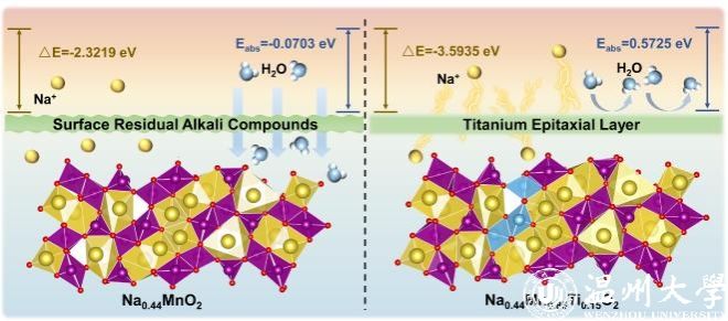 基于此,我校化学与材料工程学院肖遥团队提出了一种通过Ti取代Mn的内外协同策略,降低材料表面残碱、调节电化学行为,并进一步提高Na0.44MnO2耐水性。通过钛取代的材料不仅在传统的PVDF/NMP体系中表现出优异的循环稳定性,同时在CMC/H2O体系中也表现出优异的倍率性能和超高的循环稳定性。利用原位XRD、深度刻蚀XPS表征技术,证明了钛取代的样品在充电和放电过程中具有优异的结构稳定性及表面存在含Ti外延层。DFT理论计算阐明了电子结构的机制,同时进一步证明了钛取代的正极材料具备优异的疏水性。同时,本工作采用工业级原料进行了大规模Na0.44Mn0.85Ti0.15O2材料的制备,与实验室小批量的Na0.44Mn0.85Ti0.15O2电化学性能相比,仍表现出优异的倍率性能和循环稳定性。此外,本文提出了一种基于富钠材料PBA的新型钠补偿策略。制备出的PBA-Na0.44Mn0.85Ti0.15O2复合材料用作正极,与硬碳负极组装成钠离子电池,首次实现了隧道型氧化物正极从实验室放大到工业生产,为隧道型氧化物正极在SIBs中的实际应用提供了重要参考。