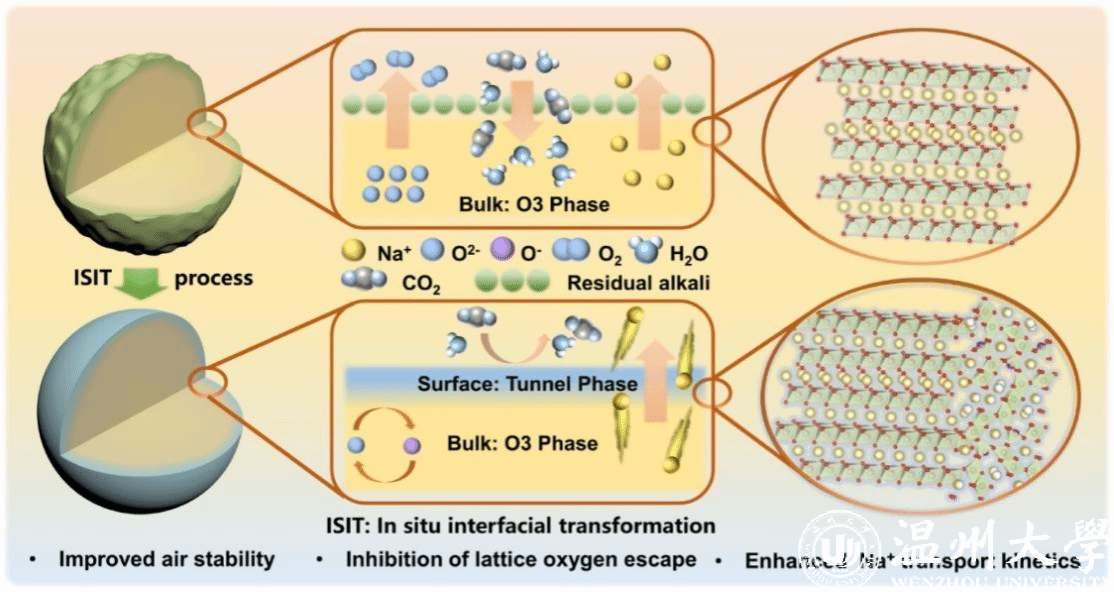 层状氧化物正极的应用受到空气稳定性差、表面残碱严重和晶格氧逃逸的限制。由于空气中H2O的嵌入以及离子交换和CO2的加速作用,会导致氧化物正极表面残碱的产生和结构破坏,从而正极材料失效。此外,不可逆的相变和缓慢晶格氧动力学会也会对电池综合性能产生不利影响。因此,提高空气和结构稳定性对于氧化物正极的实用化至关重要。