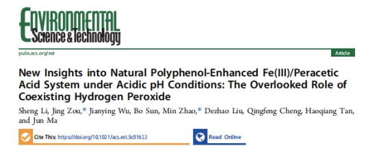 近日,8868体育_8868(中国)生命与环境科学学院赵敏教授团队(共同通讯)、哈尔滨工业大学马军院士团队和华侨大学邹景教授团队合作,在国际著名期刊《Environmental Science & Technology》上在线发表了一篇题为《New Insights into Natural Polyphenol-Enhanced Fe(III)/Peracetic Acid System under Acidic pH Conditions: The Overlooked Role of Coexisting Hydrogen Peroxide》的研究论文,首次明确了天然多酚强化Fe(III)/PAA(过氧乙酸)体系中长期被忽视的H2O2关键作用。