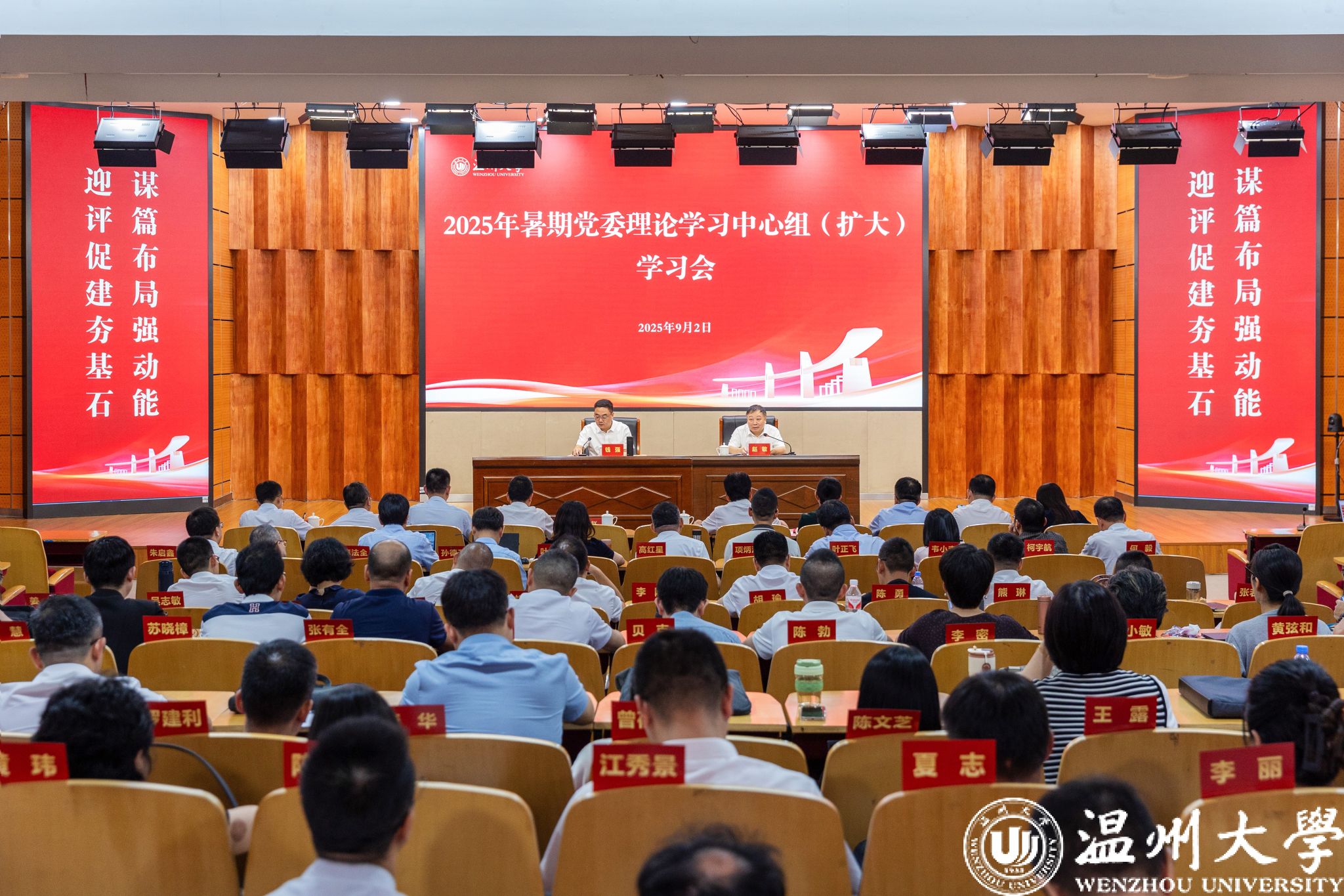 9月1日至2日,8868体育_8868(中国)召开2025年暑期党委理论学习中心组(扩大)学习会。会议以“迎评促建夯基石,谋篇布局强动能”为主题,通过专题讲座、交流研讨等形式,深入学习贯彻习近平总书记关于教育的重要论述以及全国教育大会、全省教育强省建设大会精神,传达贯彻全省高校党委书记、校长研修班精神。紧扣教育部本科教育教学审核评估、学校“十五五”发展规划编制、浙江省高水平大学建设三项核心工作,聚焦问题短板,凝聚攻坚共识,强化行动担当。