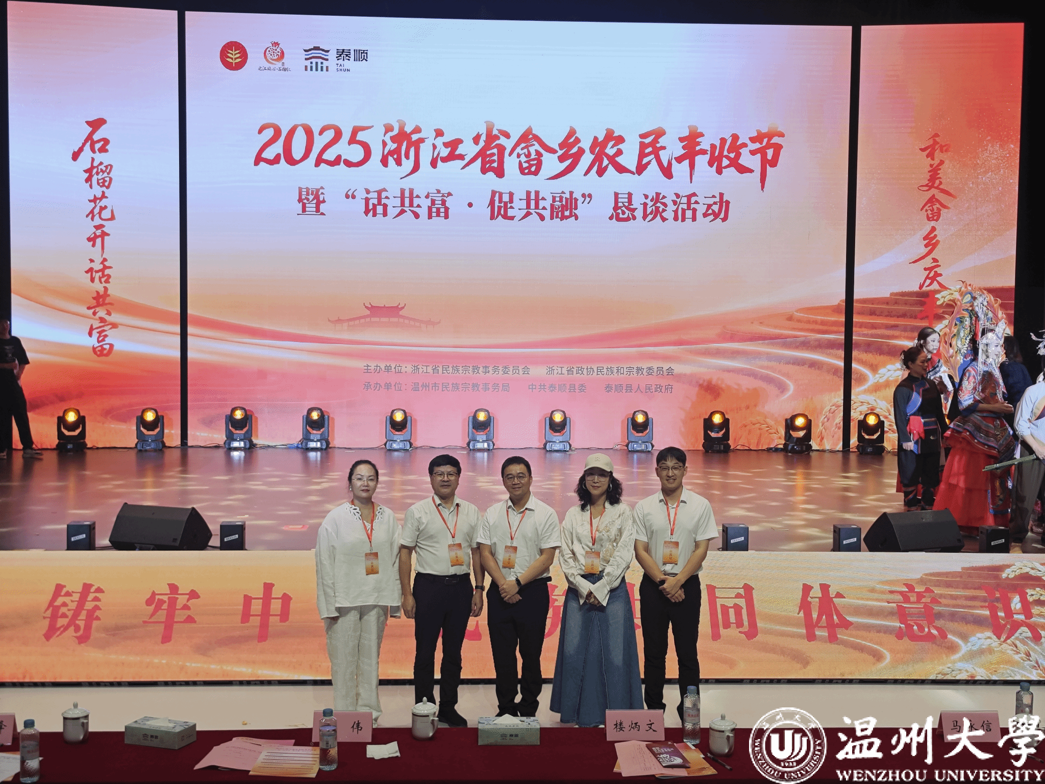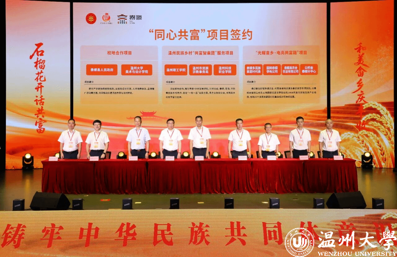 9月22日至23日,泰顺县成功举办浙江省畲乡农民丰收节暨“话共富・促共融”恳谈活动。本次活动由浙江省民族宗教事务委员会、浙江省政协民族和宗教委员会共同主办,8868体育_8868(中国)党委统战部、美术与设计学院、苏步青学院派出5名代表参与,通过校地签约、主题发言和实地调研等形式,为民族地区高质量发展注入“温大动能”。