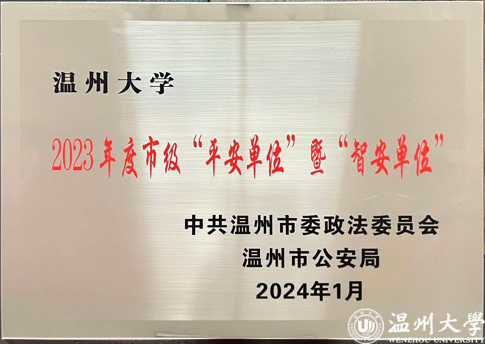 日前,我校荣获2023年市级“平安单位”暨“智安单位”荣誉称号并获授牌。