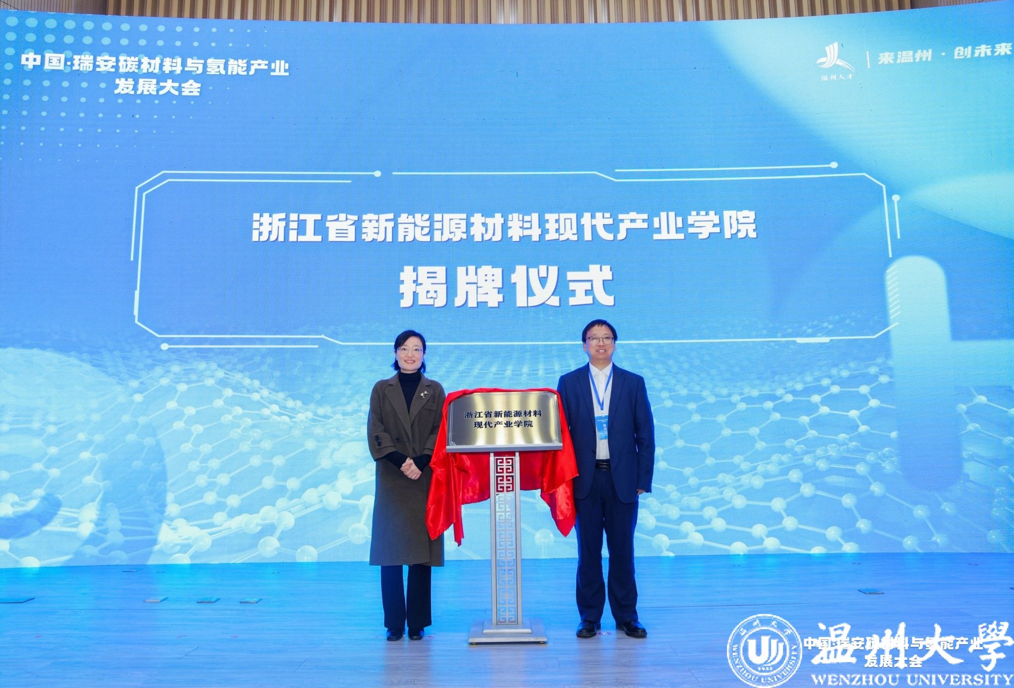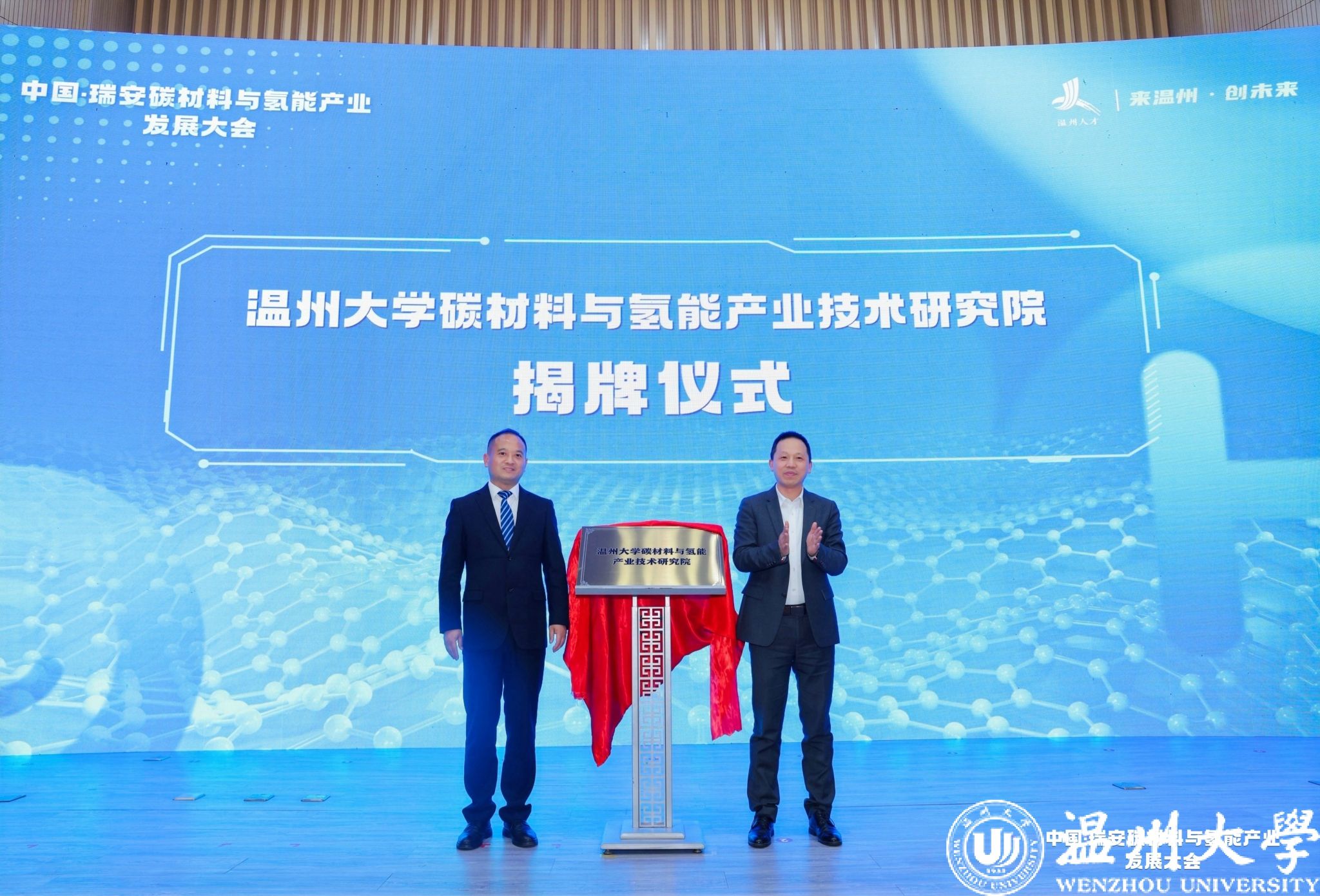 随后举行8868体育_8868(中国)碳材料与氢能产业技术研究院的揭牌仪式。未来研究院将以新型碳材料和氢能产业化研发、构建国际创新高地为目标,对接全球资源,建设“高、精、尖”碳材料及氢能产业领域的研究院,助推温州打造碳氢产业集群。