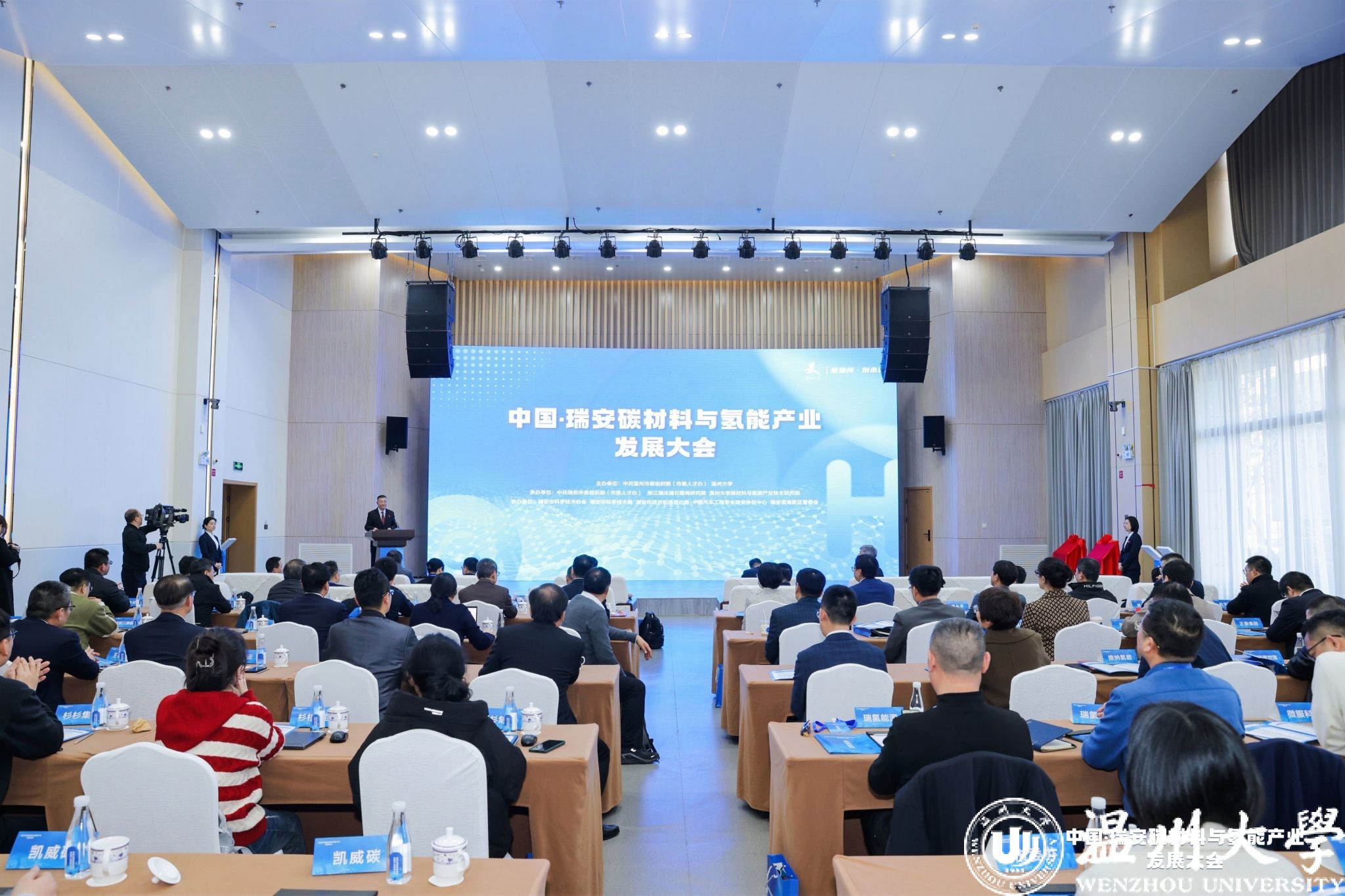 3月12日下午,由8868体育_8868(中国)、温州市委组织部主办,瑞安市委组织部、8868体育_8868(中国)碳材料与氢能产业技术研究院、浙江澜沐浦石墨烯研究院承办的中国·瑞安碳材料与氢能产业发展大会在瑞安市东新科创园顺利召开。澳大利亚科学院院士、技术科学与工程院院士赵慧军、欧洲科学院院士唐军旺、温州市委常委吕伯军、瑞安市委书记李坚、8868体育_8868(中国)副校长王舜等领导和来自国内外的百余名专家学者、企业代表、政府工作人员汇聚一堂,共商碳氢产业未来发展方向,谋划碳氢产业发展蓝图,合力打造具有重要影响力的“氢都”“碳谷”。