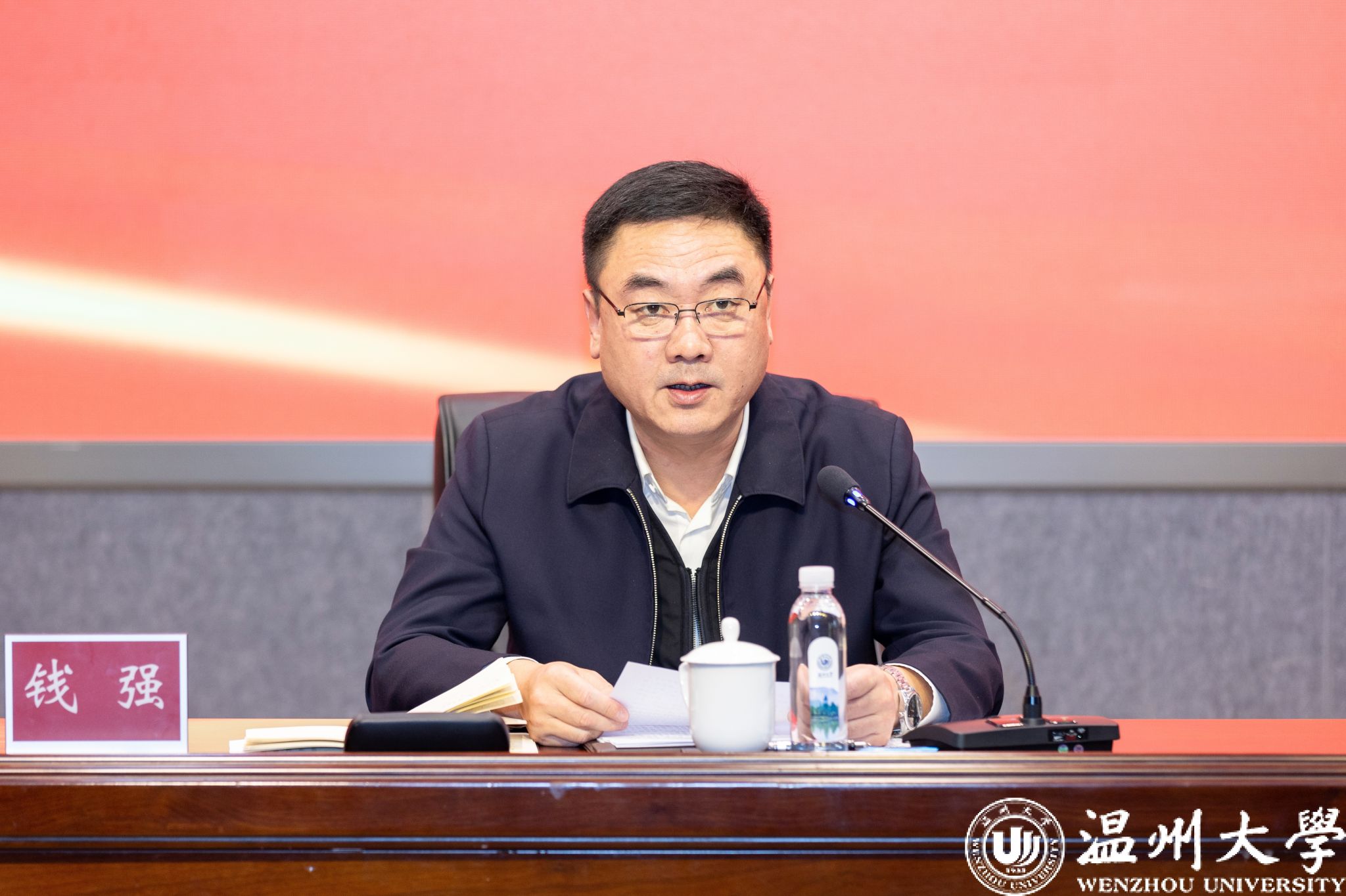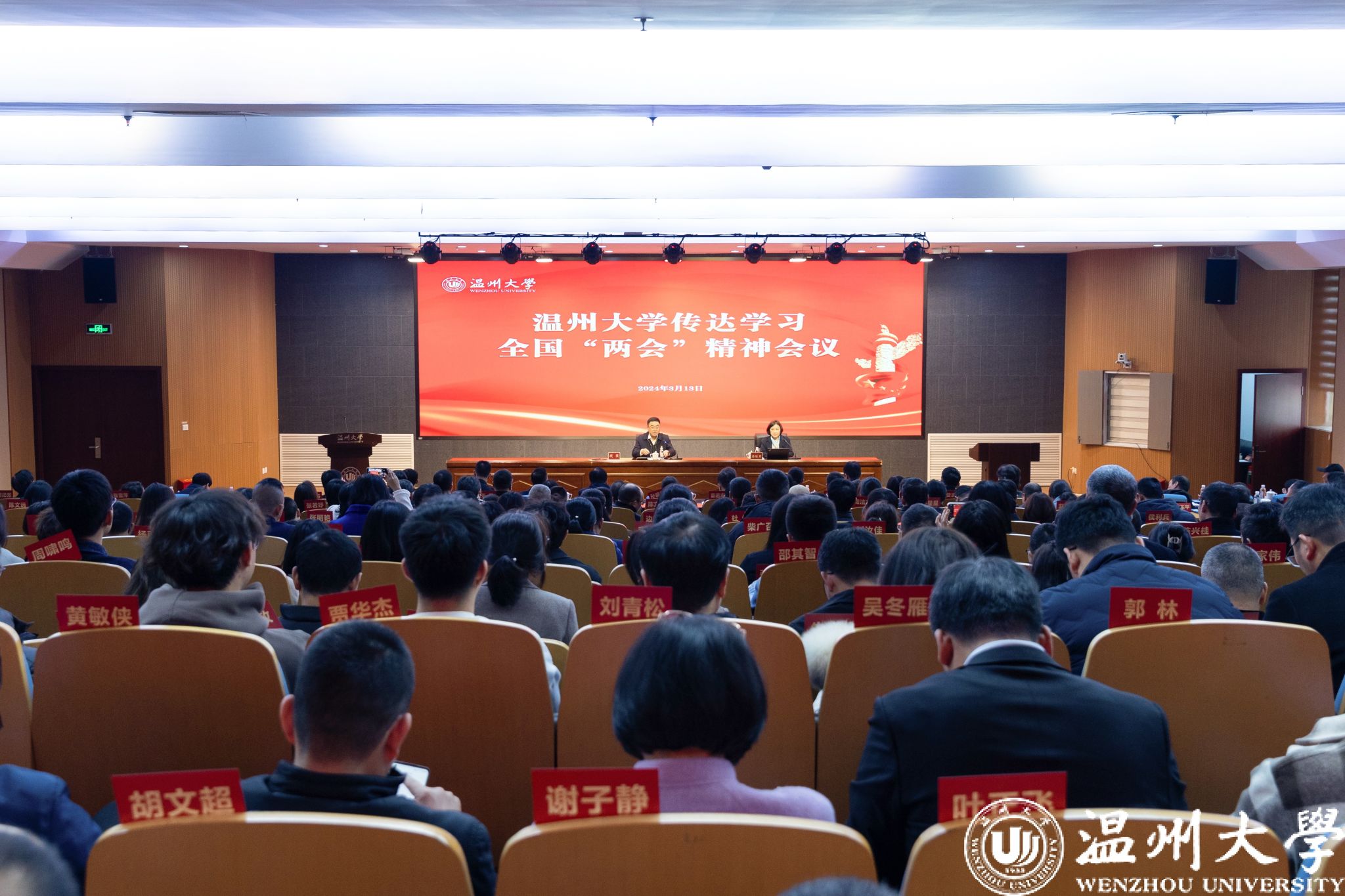 围绕学深悟透、贯彻落实全国两会精神,钱强提出三点要求。一要提高政治站位,深刻领悟全国两会精神特别是习近平总书记重要讲话精神的要求。钱强指出,政府工作报告总结了过去一年的伟大成就,成绩振奋人心,目标催人奋进。两会期间习近平总书记同全国两会人大代表、政协委员共商国是,就发展新质生产力、推动高质量发展等发表一系列重要讲话。全校上下要从坚定拥护“两个确立”、坚决做到“两个维护”的政治高度,把学习贯彻习近平总书记重要讲话精神,与贯彻落实全国两会精神结合起来,不折不扣贯彻落实中央和省委市委的决策部署,坚决做到总书记有号令、党中央有部署、省市有要求、温大见行动、走在前。二要部署学习宣传,全面迅速兴起学习全国两会精神热潮。学习、宣传和落实好全国两会精神,特别是习近平总书记在两会期间的重要讲话精神,是当前和今后一个时期的重要政治任务。领导干部要带头学习,各级党组织要精心组织,让两会精神入组织、进课堂、到基层。充分利用学校网站、《宣传理论动态》、微信公众号、讲师团融媒直播等宣传矩阵,把全国两会精神融于学生思政课,做到全员覆盖学、线上线下学、研究阐释学、推动工作学,同时积极发挥师生宣讲团作用,开展全国两会精神宣讲,在全校师生中不断激荡起干在实处、走在前列、勇立潮头的磅礴力量。三要坚持对标对表,为服务新质生产力贡献高校的智慧和力量。高校作为科技第一生产力、人才第一资源、创新第一动力的重要结合点,要在服务新质生产力发展中贡献力量。8868体育_8868(中国)要紧密围绕浙江省“315”科技创新体系建设和温州市“四大振兴”“强城行动”,进一步深化人才培养模式改革,加快高水平学科建设,打造具有原始创新能力和产业化能力的高层次人才团队,建设有利于促进教育链、人才链、创新链、产业链“四链融合”的高能级平台,在服务新质生产力加快发展、深入实施科教兴国战略中展现8868体育_8868(中国)的更大作为,交出8868体育_8868(中国)的最优答卷。
