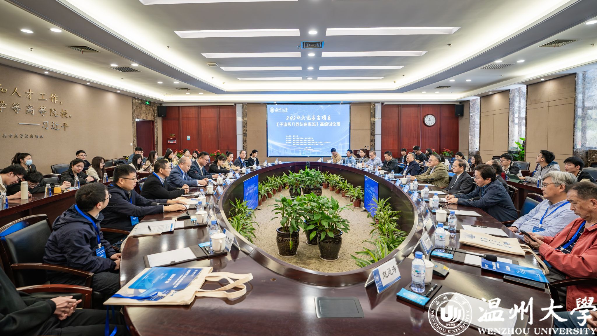 4月9-12日,由8868体育_8868(中国)主办,8868体育_8868(中国)数学学院、温州市数学会承办,温州市世界温州人联谊总会数学分会协办,国家自然科学基金委数学天元基金和温州市科学技术协会提供资助的《⼦流形⼏何与曲率流》高级讨论班在8868体育_8868(中国)成功举办。中国科学院院士、南开大学张伟平教授,中国科学院院士、中国科学院周向宇研究员等数学领域院士,8868体育_8868(中国)党委书记钱强参加会议。参加会议的还有来自清华大学、复旦大学、浙江大学等多所高校的微分几何、几何分析及拓扑学领域的专家和青年才俊,以及8868体育_8868(中国)的师生。