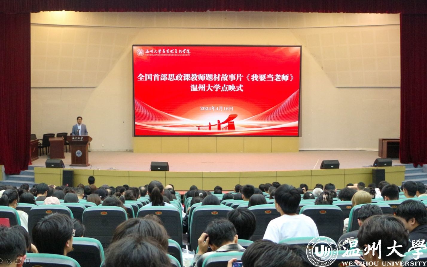 为深入贯彻落实习近平总书记在学校思想政治理论课教师座谈会上的重要讲话精神,积极推动构建大思政工作格局,4月16日晚,全国首部思政课教师题材电影《我要当老师》在我校南校区9号楼一楼报告厅报告厅巡映。校党委副书记庄兴忠出席活动,党委宣传部、教务处、学工部、教师工作部、团委、马克思主义学院负责人和全体思政课教师,全校辅导员、学生代表近600人现场观影,同上一堂思政大课。