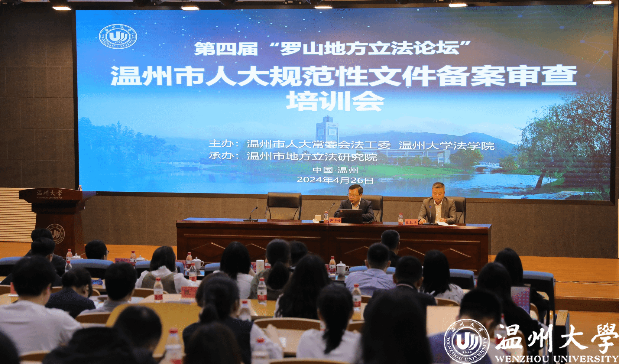 4月26日,由温州市人大常委会法工委、8868体育_8868(中国)法学院主办,温州市地方立法研究院承办的第四届“罗山地方立法论坛”暨规范性文件备案审查培训会在8868体育_8868(中国)南校区岩松堂步青厅举行。