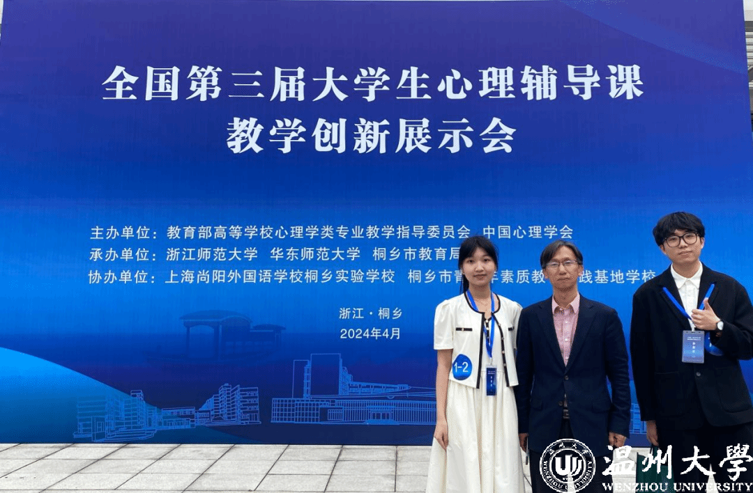 近日,全国第三届大学生心理辅导课教学创新展示会在浙江桐乡举办。展示会由教育部高等学校心理学类专业教学指导委员会、中国心理学会主办,浙江师范大学、华东师范大学、桐乡市教育局联合承办。我校教育学院心理学系盛建森老师指导的20级应用心理学李玉婷同学与21级应用心理学张明秀同学,经过三轮竞争,双双荣获特等奖,并均为决赛小组第一名。