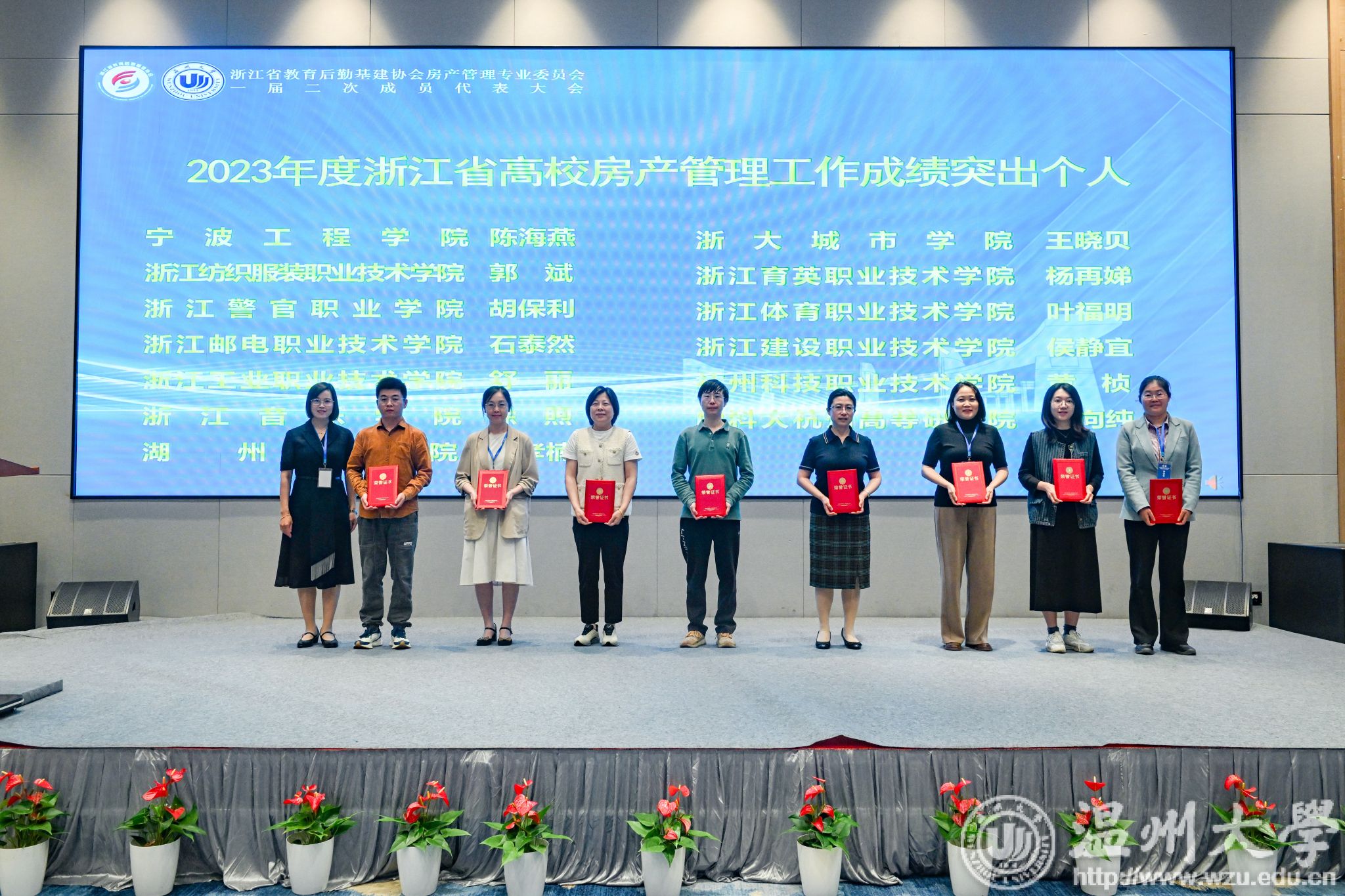 大会表彰了2023年度房地产管理工作突出集体20家、突出个人27名。我校国资与实验室管理处荣获“2023年度浙江省高校房产管理工作成绩突出集体”称号,国资与实验室管理处处长张若妤获得“2023年度房地产管理工作先进个人”称号。