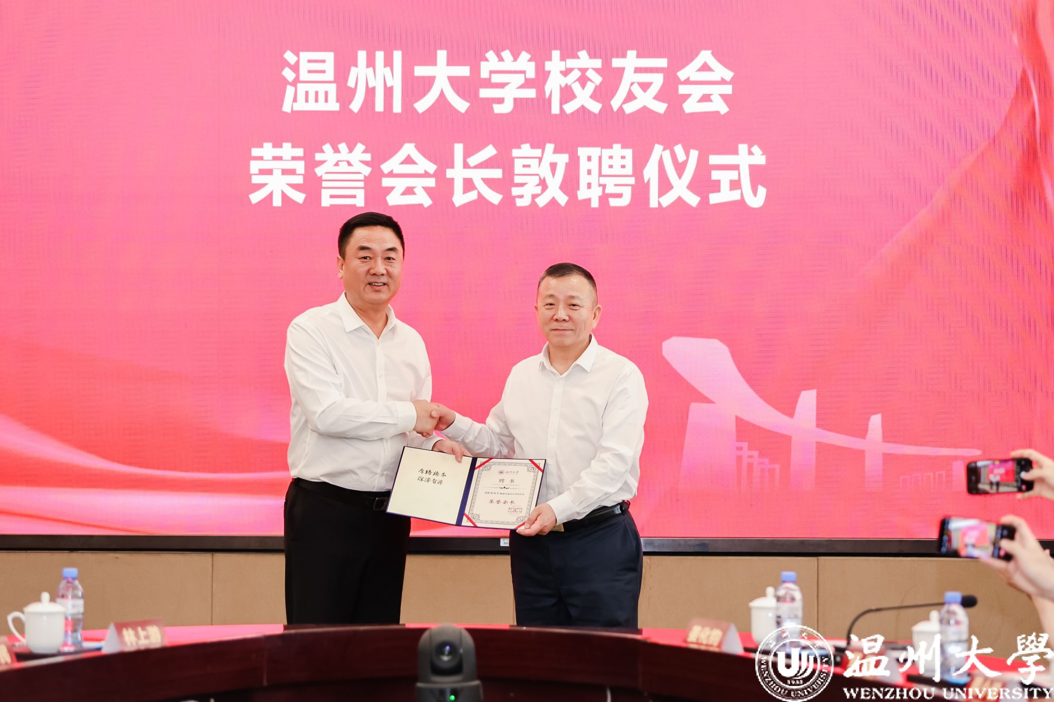 会上举行了8868体育_8868(中国)校友会荣誉会长敦聘仪式,敦聘8868体育_8868(中国)原党委书记谢树华为荣誉会长。谢树华表达了对学校和校友的感谢。他指出,校友工作的蓬勃发展是多方合力的成果,得益于学校领导有力指导和校友办辛勤付出,以及广大校友的积极响应与热情参与。他介绍了自己退休一年以来的工作经历,既体现了他退而不休、持续贡献社会的精神状态,也展现了其对即将开展的校友工作充满信心与期待。他表示,将不懈努力,继续着力打造“铁杆校友”,全力推进温大发展。
