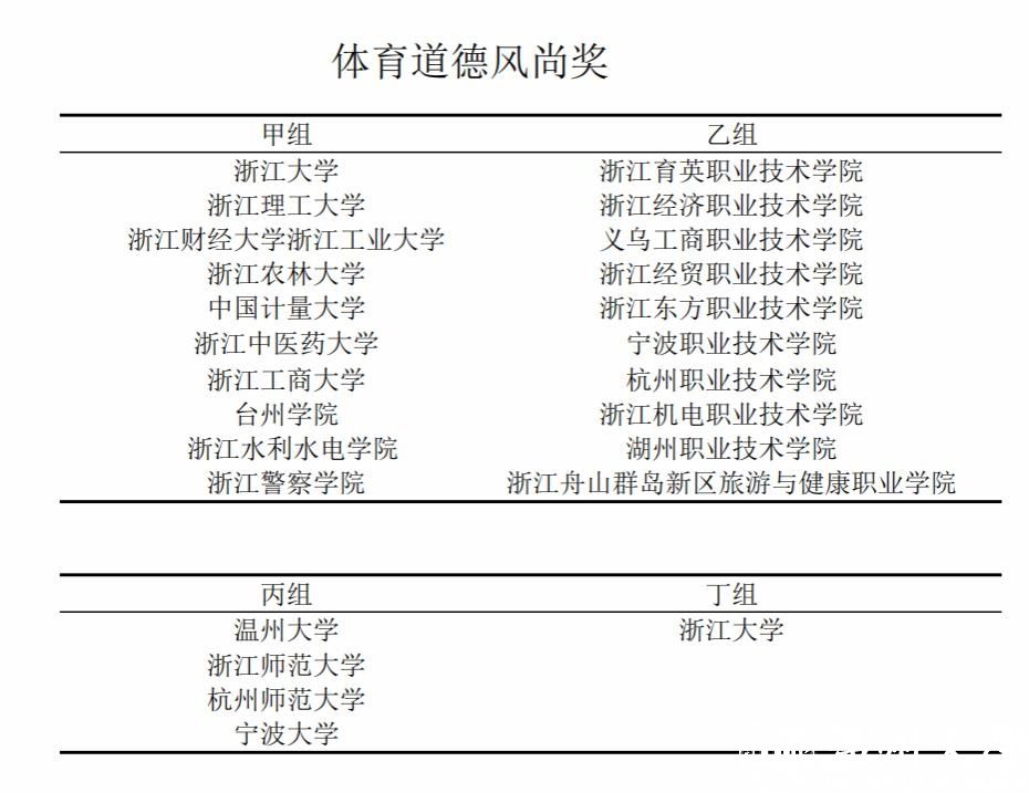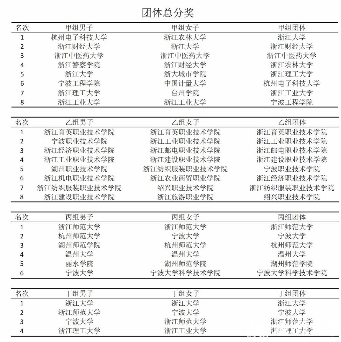 赛事诞生了甲、乙、丙、丁四个组别的男子团体总分奖、女子团体总分奖、男女团体总分奖,体育道德风尚奖,最佳组织奖。