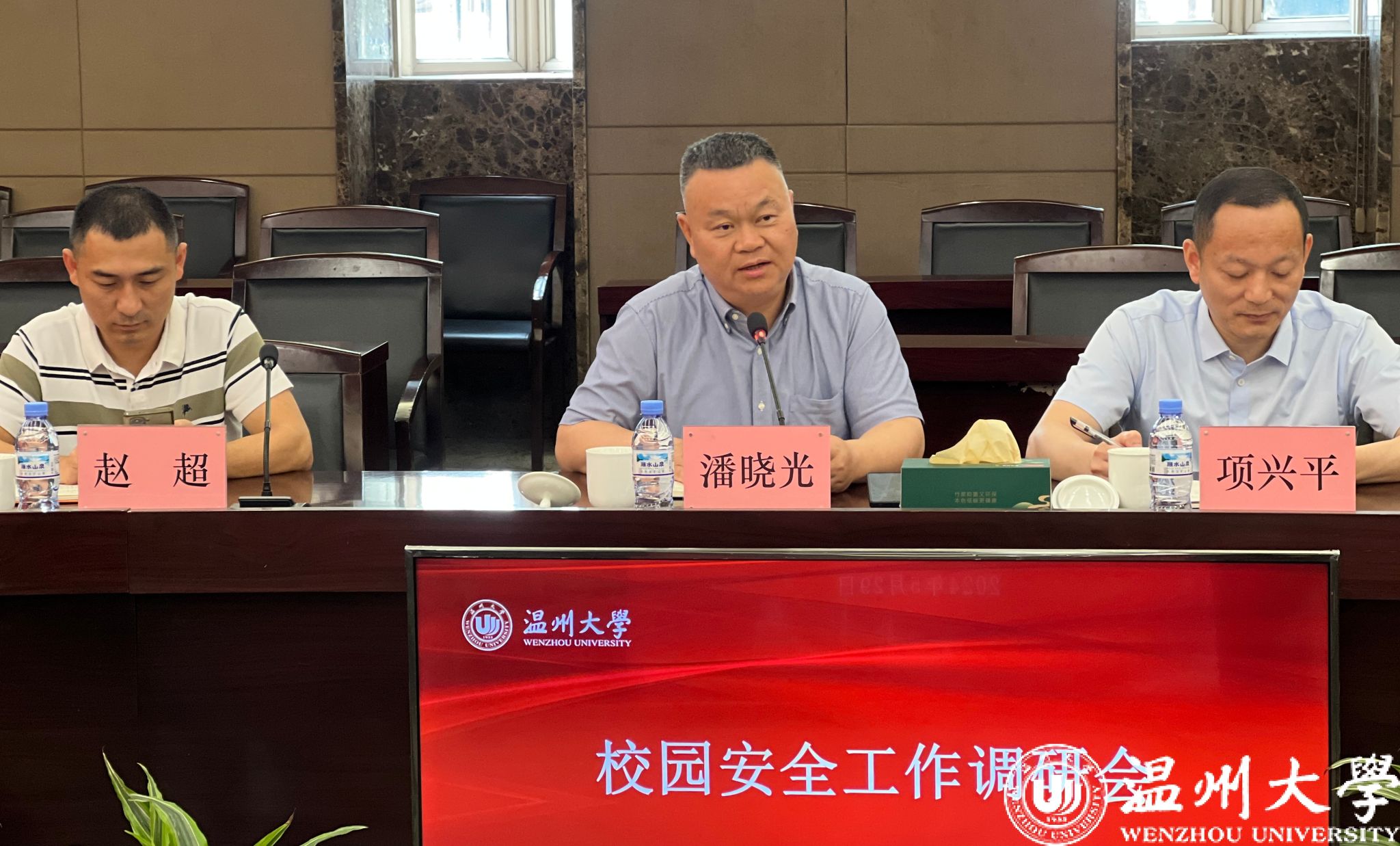 5月29日上午,温州市平安督导组第6组组长、市政协教科卫体委副主任潘晓光一行来校开展校园安全调研检查工作。校党委副书记庄兴忠出席会议并讲话,瓯海区政法委、茶山街道、高教园区派出所、我校相关部门负责人等参会。
