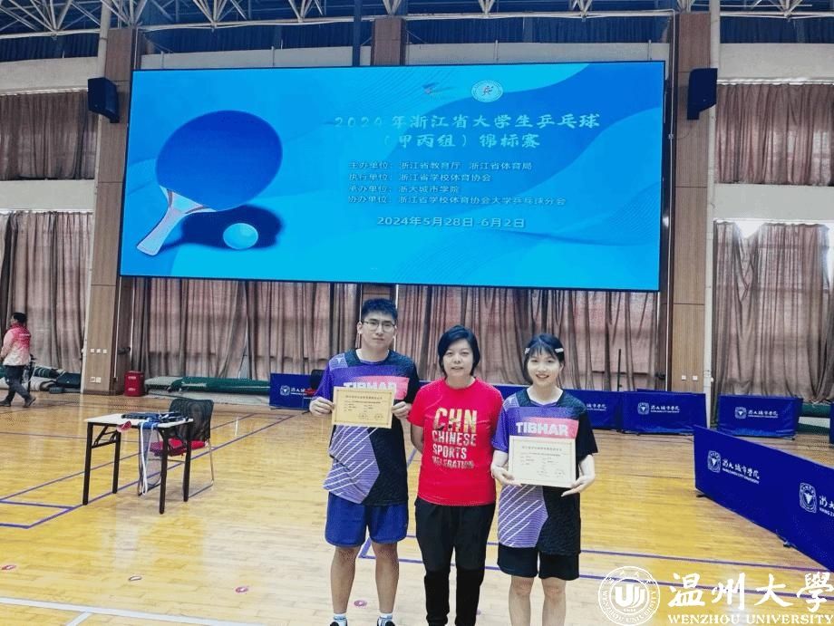 6月2日,2024年浙江省大学生乒乓球(甲丙组)锦标赛在杭州市浙大城市学院落下帷幕。我校乒乓球队奋勇拼搏,丙组男子团体首次进入决赛斩获第二,取得历史性突破;男子单、双打连续三年保持第三;甲组单项继去年首次获得第一,再次在混双项目获第五名,2名队员获“优秀运动员”荣誉称号。