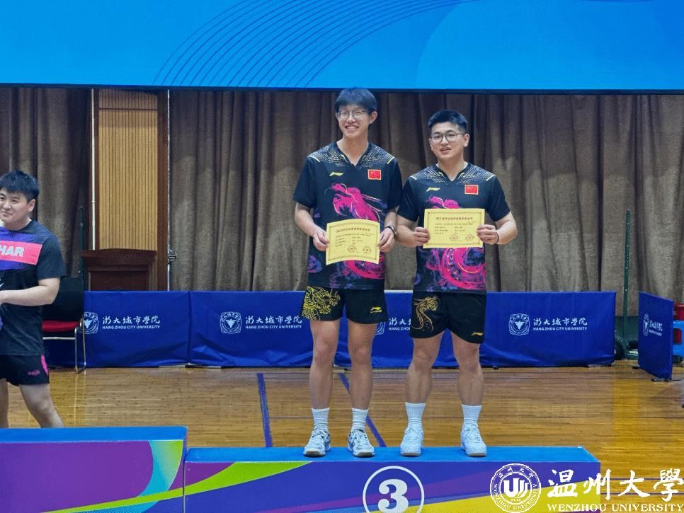 在比赛中,队员们以精湛的球技、默契的配合、良好的心态展示出温大体育人的竞技水平,他们默契无间,用一个个扣杀、旋球、弧线球呈现精彩。由体育与健康学院吴骁、管福民、马钺、陈骁组成的男子团体,在小组赛中战胜杭州师范大学、浙江体育职业技术学院、负于宁波大学,以小组第二晋级。团体在半决赛中力克去年季军台州学院,首次晋级决赛,最终夺得丙组男团第二名的成绩,取得历史性突破。