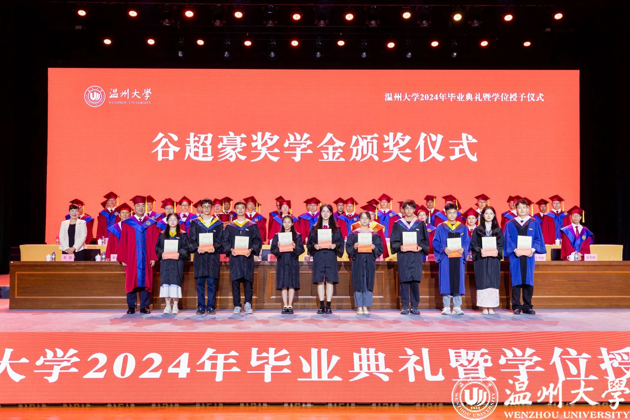 璀璨荣光照此时,拼搏奋斗是青春。典礼上表彰了谷超豪奖学金获得者、省级优秀毕业生以及校级优秀毕业生。校党委副书记庄兴忠宣读表彰文件。校党委书记钱强、校长赵敏分别为谷超豪奖学金获得者与省级优秀毕业生代表颁奖。