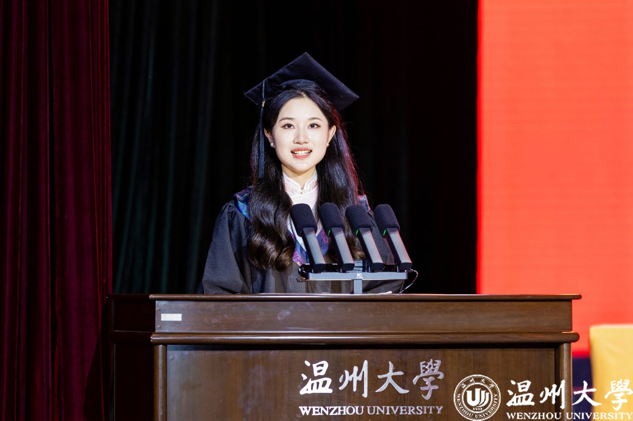毕业本科生代表、数理学院的舒璐莹同学则分享了自己四年蜕变成长的过程,她坚信蓄势待发的温大学子必将以温大为新的起点,带着温大精神讲好属于温大人的故事。“祝毕业生的未来像几何图形般多姿多彩,祝温大如同斐波那契数列一样节节攀升!”