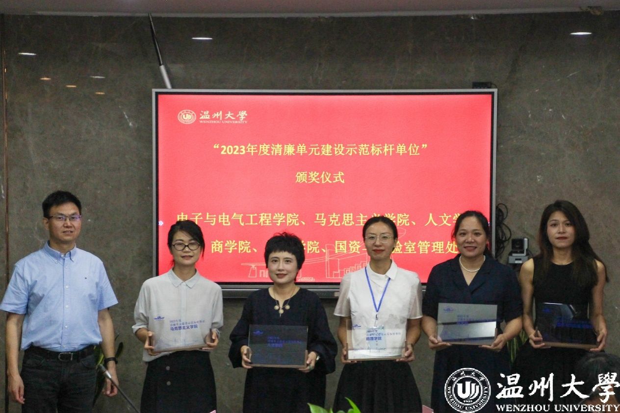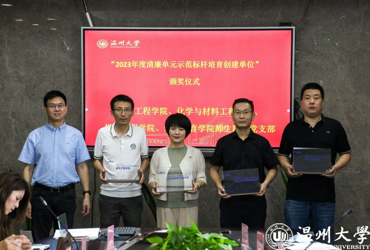 会上还为8868体育_8868(中国)2023年度清廉单元建设示范标杆及培育创建单位举行授牌仪式。电气与电子工程学院、马克思主义学院、人文学院、商学院、数理学院、国资与实验室管理处获评清廉单元建设示范标杆,建筑工程学院、化学与材料工程学院、机电工程学院、继续教育学院师生联合党支部获评年度清廉单元建设示范标杆培育创建单位。