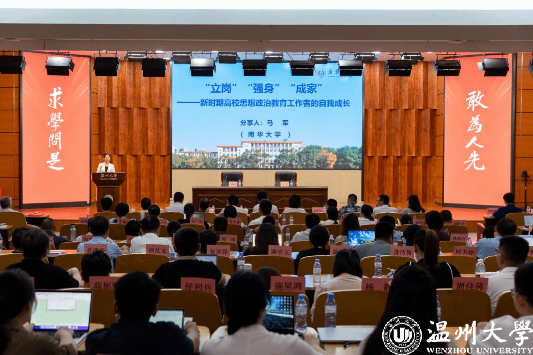 会上,“最美高校辅导员”、南华大学马军研究员和浙江省理论宣讲名师工作室负责人、浙江工业大学原党委副书记陈杰教授分别作专题报告。马军在《新时期高校思想政治教育工作者的自我成长》主题报告中,围绕“立岗”:做好“职业生涯规划”“强身:做好12345”“成家:做好得之淡然失之淡定”三个方面,结合自身近三十年辅导员工作经历,从守住两条底线、培养三种意识、遵循“四自”要求、蓄积五种力量,对“如何成为一名优秀的辅导员”展开分享。陈杰在《直面新时代思想政治教育工作的机遇与挑战》主题报告中,以胸怀“两个大局”、坚持“守正创新”、强化“政治能力”三方面为切入点,对新时代高校思政工作高质量发展的基本坐标、基本遵循、基本路径进行深入剖析,强调在强化政治能力建设中扎实推进高校学生日常思政工作高质量发展,认为辅导员应努力做到工作学习化、学习工作化,工作研究化、研究工作化,工作成果化、成果工作化。两位专家具有前瞻性和可操作性的教育理念与方法,为我校思政工作提供了新的思路和方向。