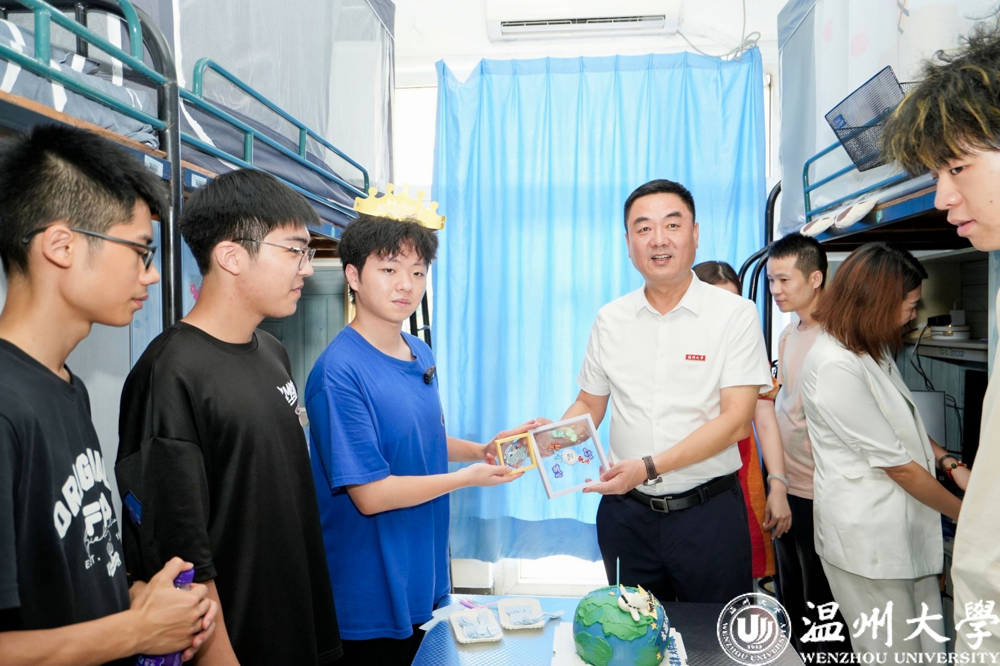 钱强走进苏步青学院、计算机与人工智能学院等新生寝室,他细致地询问起同学们的入学情况以及大学阶段的规划,勉励同学们在文化底蕴深厚的温州勤奋学习、充实生活、励志考研。他还为当天过生日的楼同学送上了专属祝福,希望他发挥专业所长,用大数据智联世界。
