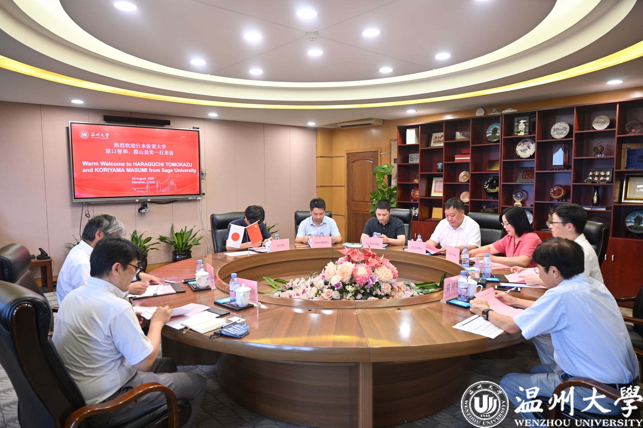 8月29日,日本佐贺大学原口智和博士、郡山益实博士等来校访问交流。校长赵敏出席座谈会。