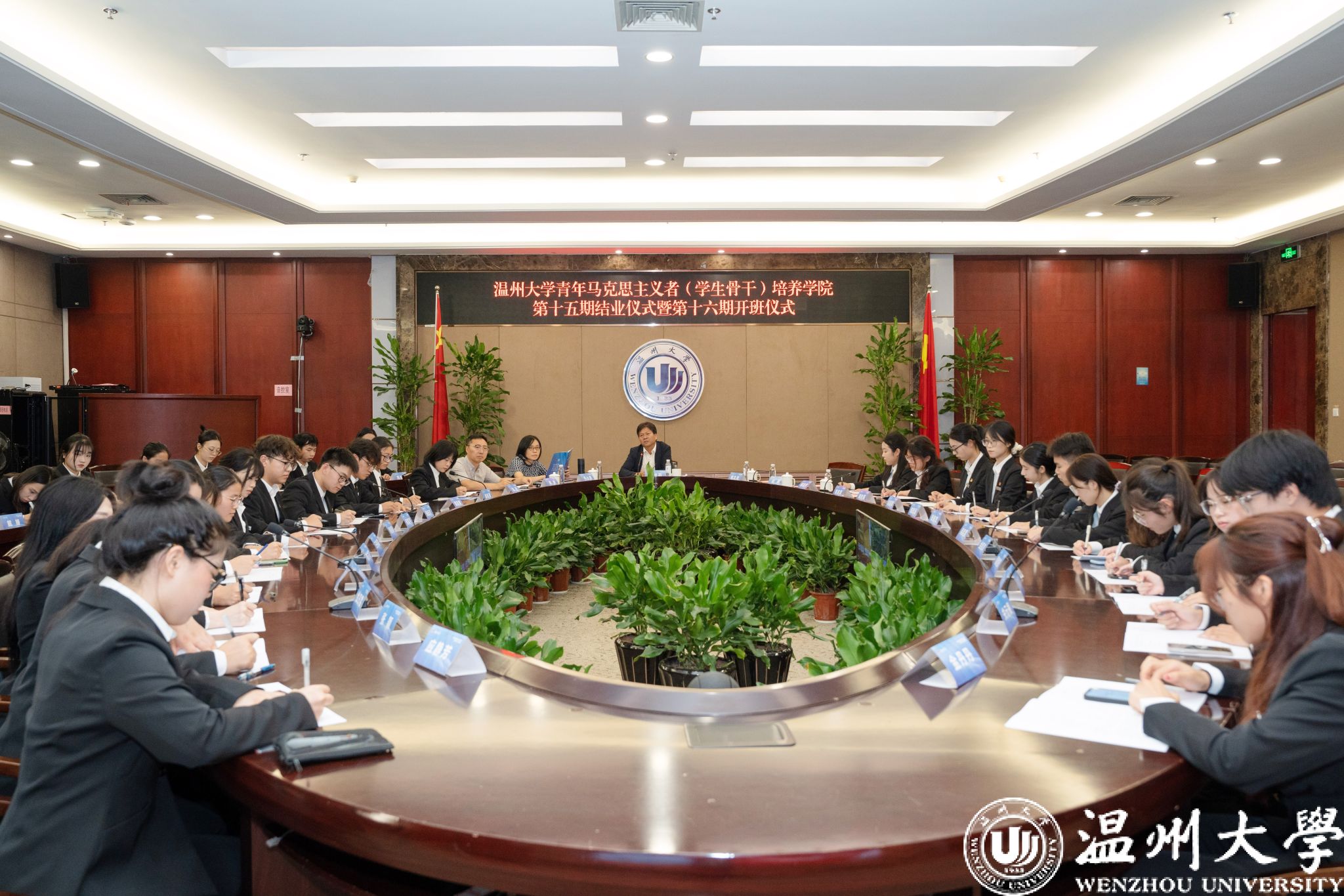 10月16日下午,8868体育_8868(中国)青年马克思主义者(学生骨干)培养学院第十五期结业仪式暨第十六期开班仪式于8868体育_8868(中国)岩松堂白鹿厅举行。校党委副书记、校青马学院院长庄兴忠出席,宣传部、学工部、研究生院等相关部门负责人参加开班仪式。