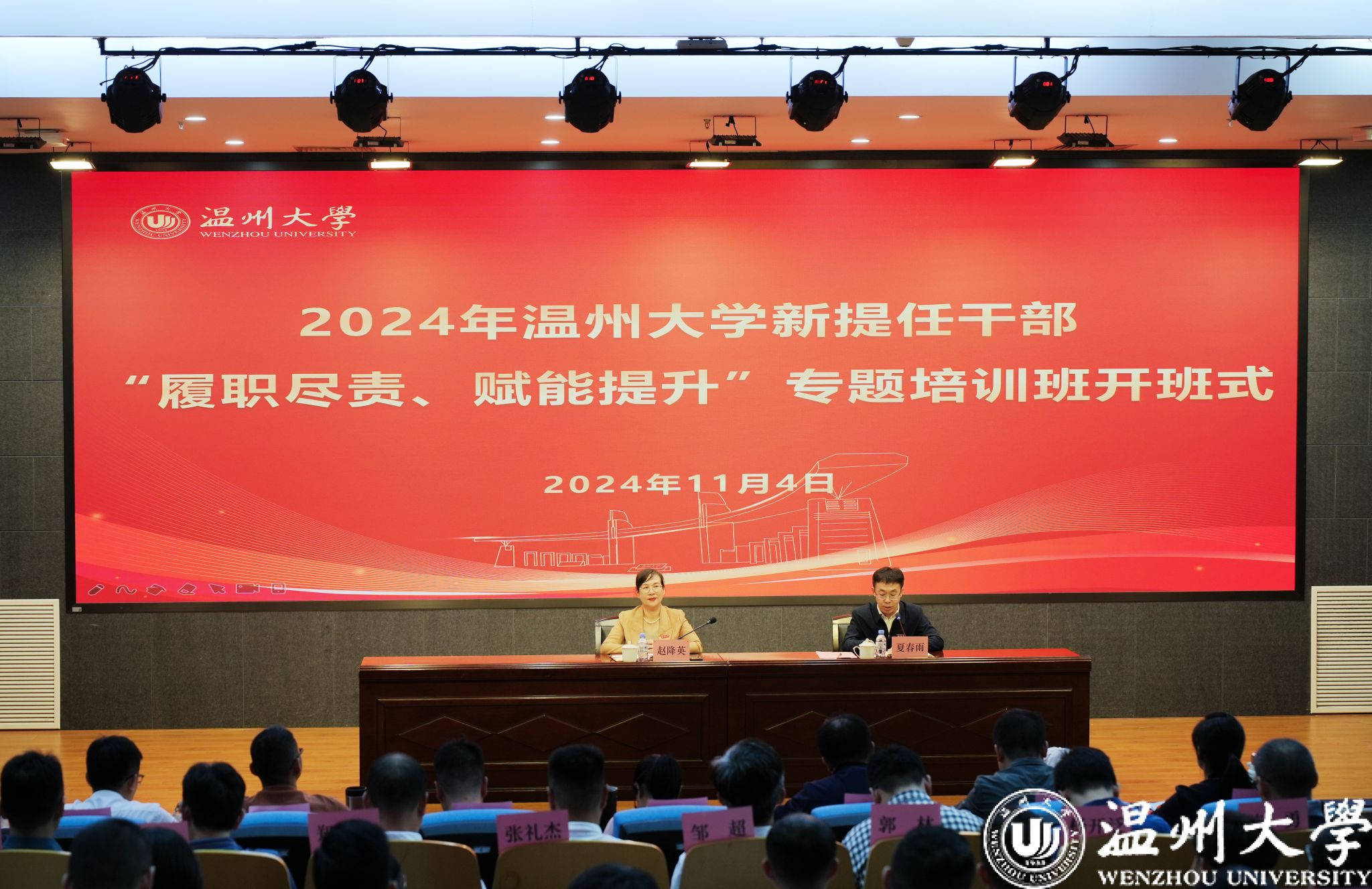 11月4日下午,我校召开2024年新提任干部“履职尽责、赋能提升”专题培训班开班式。校党委副书记赵降英出席开班式并代表学校党委作开班动员讲话。开班式由校党委委员、组织部部长夏春雨主持。