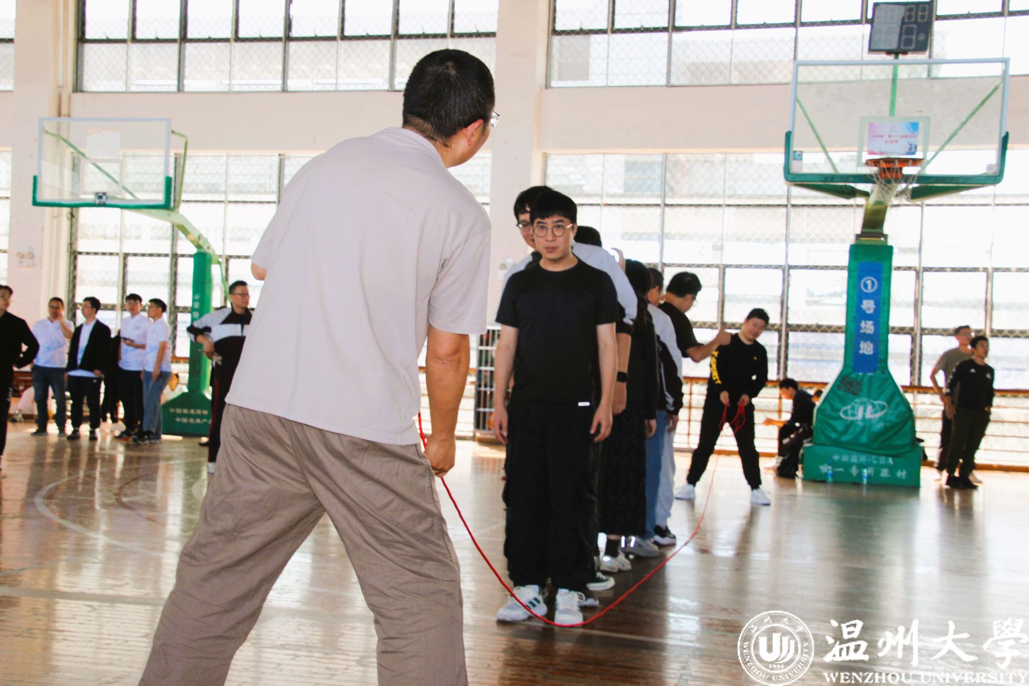 人文学院的王朋飞老师高兴地分享道:“今年也有很多的同学和老师前来观看我们比赛!现场氛围很好,大家都很开心!虽然刚开始练习的时候总是会有卡顿不连续的情况发生。但汲取之前几年经验,加之老师们的积极参与和配合,早早地来到了场地进行训练。慢慢的,我们也终于一点点掌握了如何跳好长绳的技巧,各成员之间的默契也越来越高,取得了相当大的进步!”