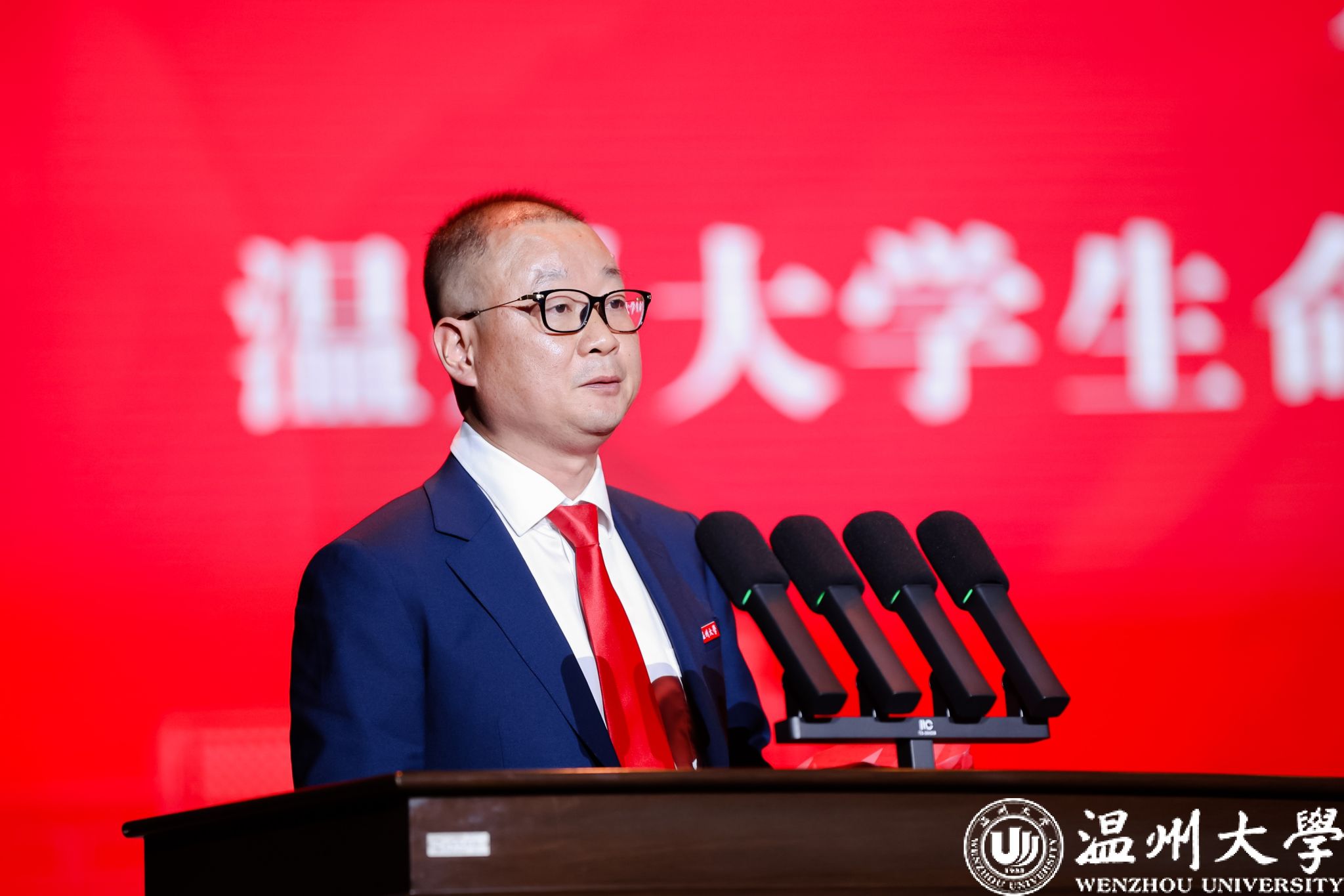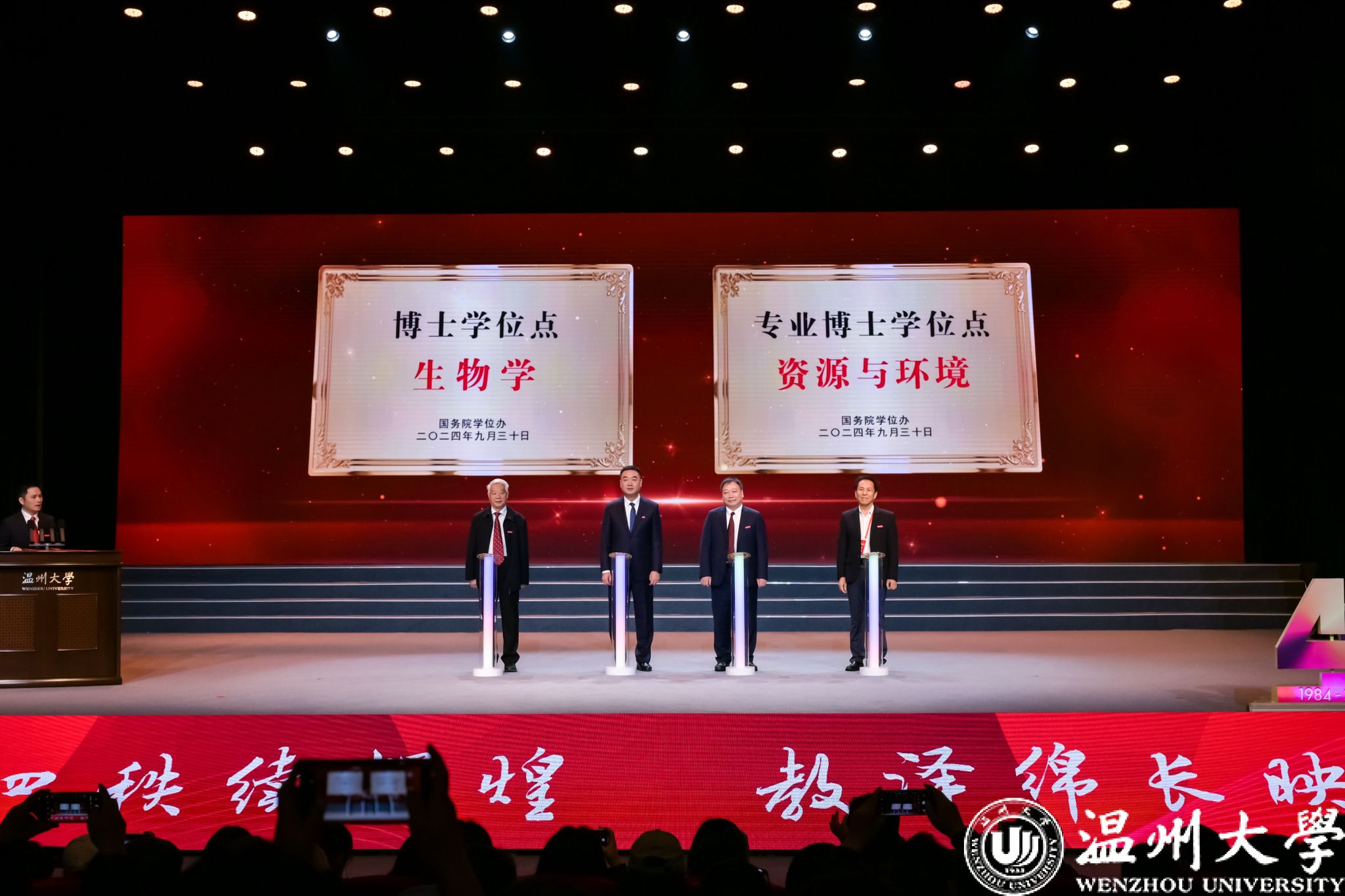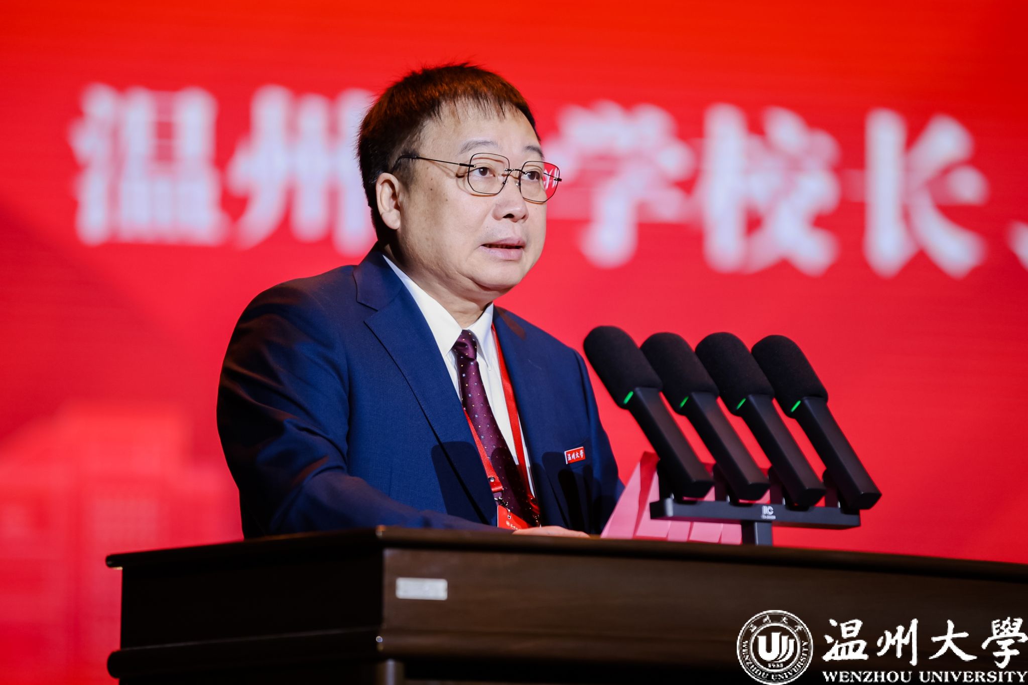 赵敏致辞。他代表8868体育_8868(中国)向长期以来关心和支持生环学院建设与发展的各级领导、社会各界朋友、广大校友及辛勤耕耘在教育科研一线的全体教职员工致以敬意。他表示,四秩春秋,8868体育_8868(中国)生命与环境科学学院用40年的砥砺奋进,书写了教书育人、科研报国的精彩篇章,一代代“生环人”把科研创新写在祖国的大地上,描绘了绿水青山、大美温州的生态画卷。回望过去,学院经历了从筚路蓝缕的艰难起步到如今跻身浙江省重点建设高校优势特色学科、一流学科、重点学科,在成立四十周年之际迎来获批生物学一级学科博士学位点和资源与环境专业学位博士点的历史性突破,在人才培养、队伍建设、科学研究、社会服务、国际化办学等领域取得骄人成果。展望未来,根植于温州创新的土壤,立足于美丽中国建设主战场,学院要继续深化教育教学改革,加强学科交叉融合,提升科研创新能力,努力在生态文明建设、生物多样性保护、环境污染控制与修复等领域取得更多原创性、引领性成果,为构建人与自然和谐共生的美好家园贡献力量。
