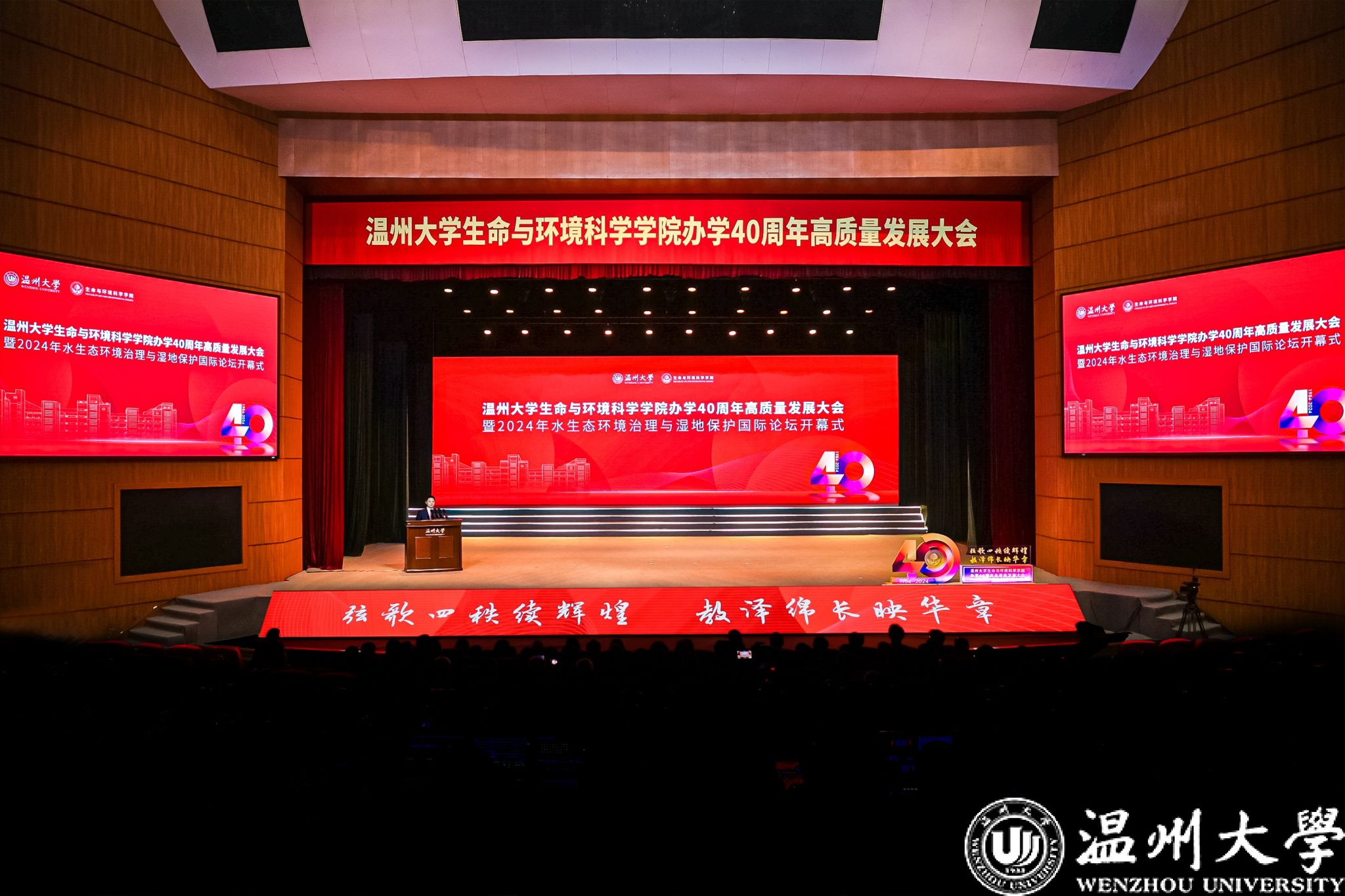11月23日上午,8868体育_8868(中国)生命与环境科学学院办学40周年高质量发展大会暨2024年水生态环境治理与湿地保护国际论坛在8868体育_8868(中国)育英大礼堂举行。教育部原副部长、教育部国家总督学顾问张天保,国家林业和草原局湿地管理司原副司长、一级巡视员鲍达明,8868体育_8868(中国)党委书记钱强,8868体育_8868(中国)校长赵敏,中国科学院院士金振民,中国工程院院士侯立安,中国工程院院士徐祖信,加拿大皇家科学院院士甘延太,浙江省统计局党组副书记、副局长、一级巡视员吴家曦,浙江省嘉兴市人民政府副市长林万乐,8868体育_8868(中国)副校长刘玉侠等出席大会。