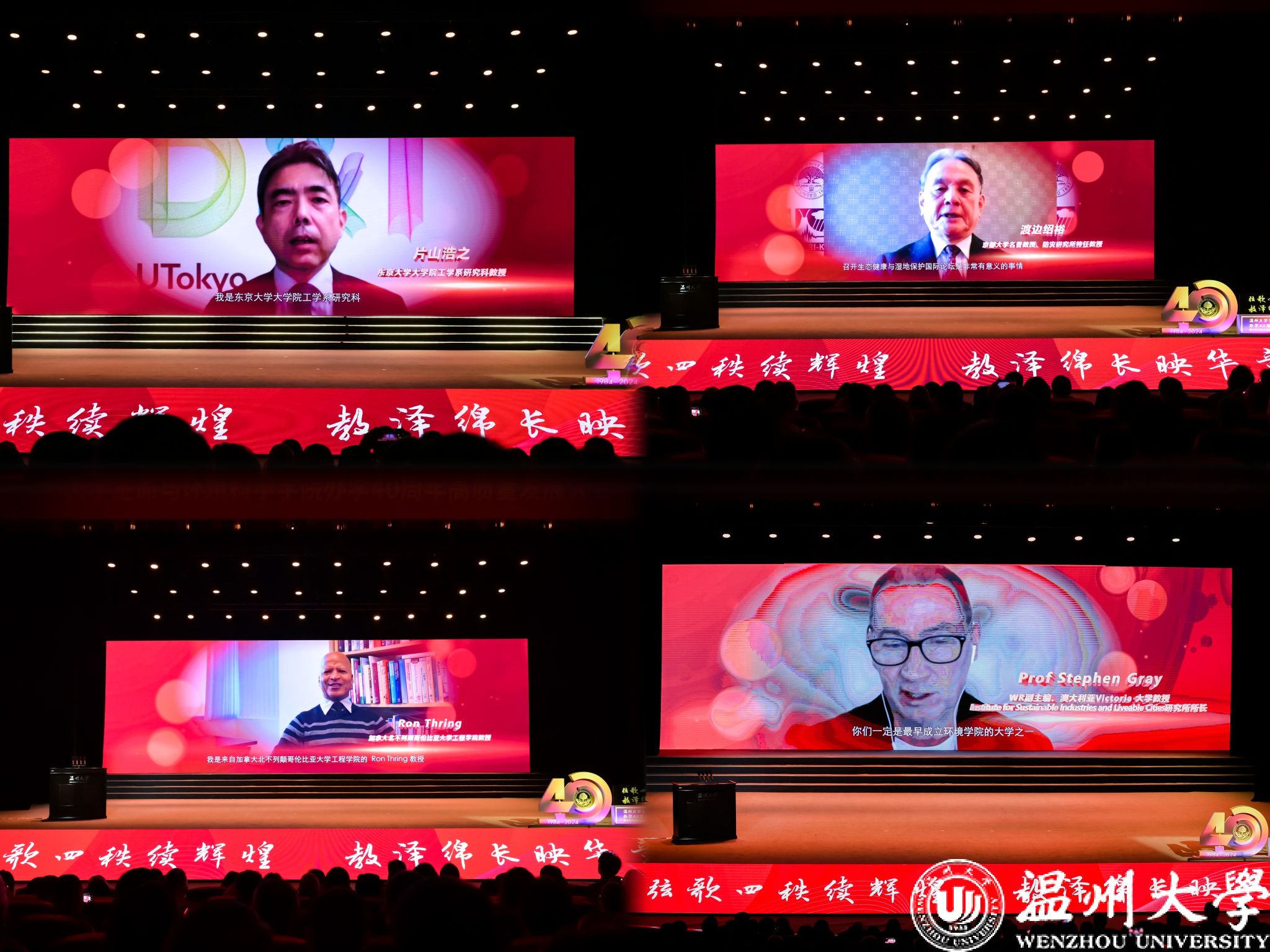 海外合作单位——东京大学、京都大学、加拿大北英属哥伦比亚大学、《水研究(Water Research)》期刊代表视频致辞,学院师生朗诵献词《挺膺正青春·启航赴未来》,大会在师生、校友合唱《光阴的故事》、《8868体育_8868(中国)校歌》中落下帷幕。