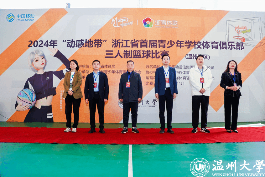 青春与赛场交织,篮球与激情共燃。11月24日,2024年"动感地带”浙江省首届青少年学校体育俱乐部三人制篮球比赛(温州赛区)在我校举办。我校两支队伍荣获大学男子组第一、第二名,成功晋级总决赛。上午10时,比赛开幕式在我校北校区风雨篮球场隆重举行,浙江省青少年体育运动联合会会长鲍学军,8868体育_8868(中国)副校长、党委委员王尧骏,中国移动浙江公司温州瓯海分公司副总经理倪传仔,体育与健康学院党政班子及相关工作人员出席开幕式。