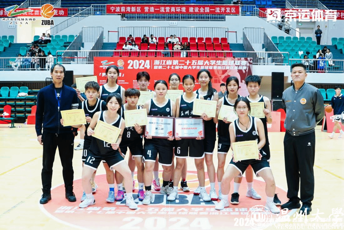 11月28-29日,浙江省第二十五届大学生篮球联赛暨第二十七届中国大学生篮球联赛浙江赛区基层赛(男子、女子丙组)比赛在宁波杭州湾新区落下帷幕,我校男子、女子篮球队荣获本届比赛亚军。体育与健康学院教练娄坚强老师荣获“优秀教练员”荣誉称号,队员单乔泽,谢忠彩、董海思、冯恩典荣获“优秀运动员”荣誉称号。