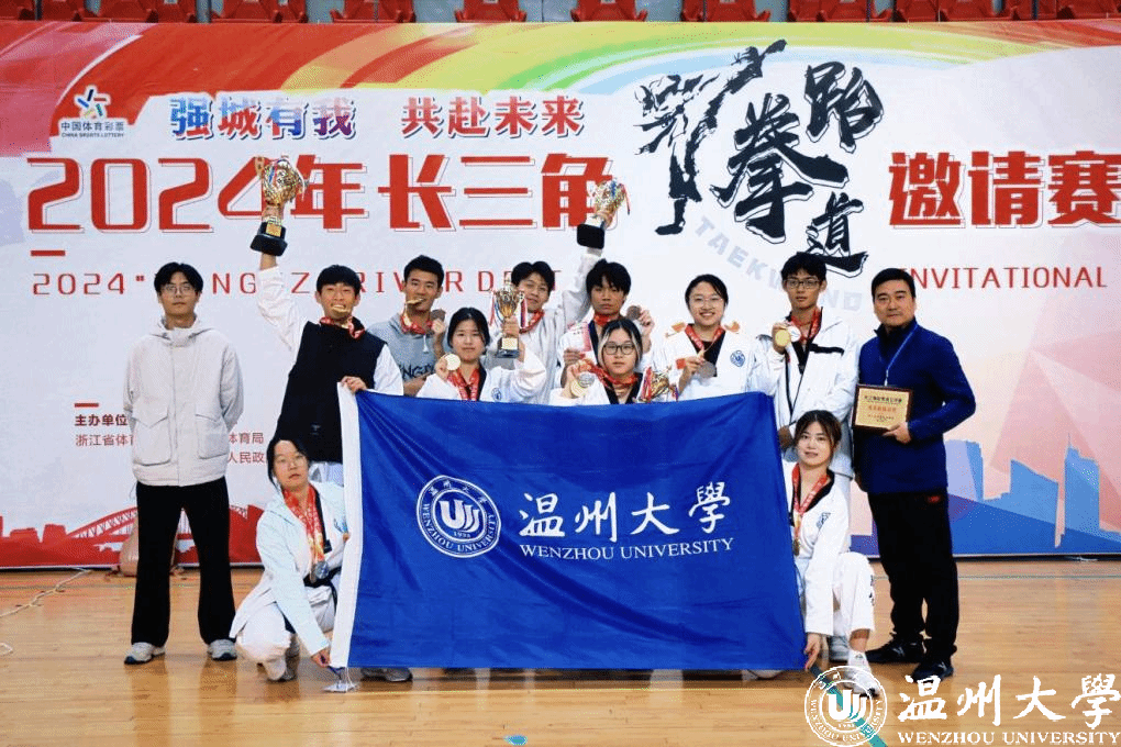 12月1日,2024年长三角跆拳道邀请赛在浙江省温州市龙港体育馆举办。我校跆拳道队积极备战,最终斩获6金5银8铜,获得竞技团体总分第六名,品势团体总分第五名,总团体总分第五名的佳绩。